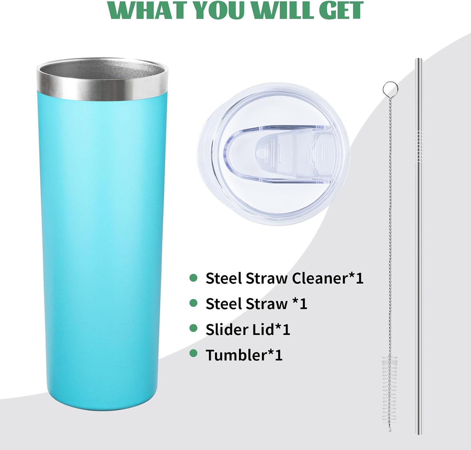 20 oz Skinny Tumbler with Lid and Straw,Stainless Steel Vacuum Insulated Tumbler Cup Double Wall Leak-proof Coffee Mug,Travel Thermal Water Tumbler for Home,Office,Outdoor (Baby blue,1)