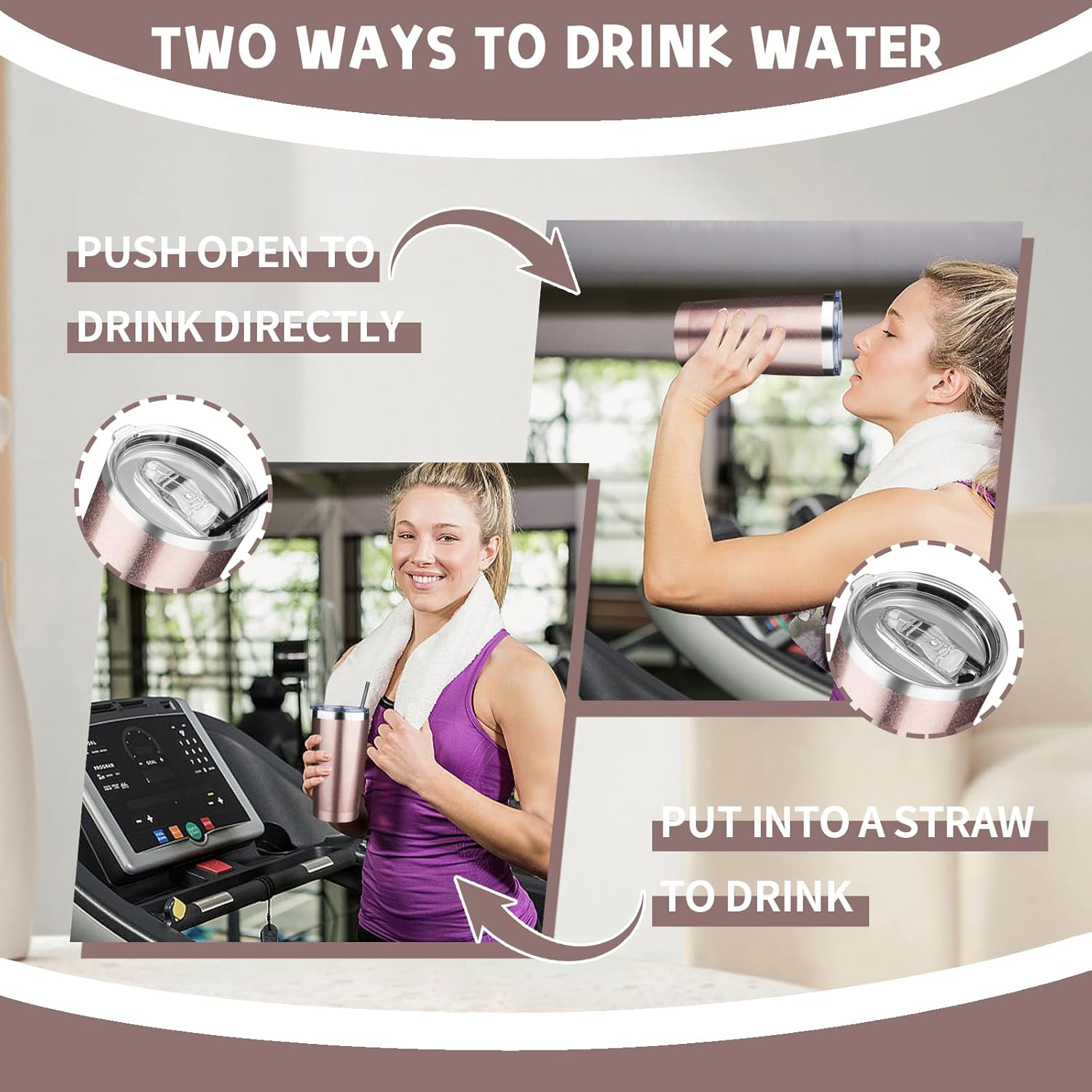 20 oz Tumbler with Lids and Straws, Stainless Steel Insulated Coffee Tumbler, Double Wall Vacuum Insulated Travel Mug Cup, Leakproof Thermal Coffee Cup for Hot and Cold Drinks (Rose Gold)