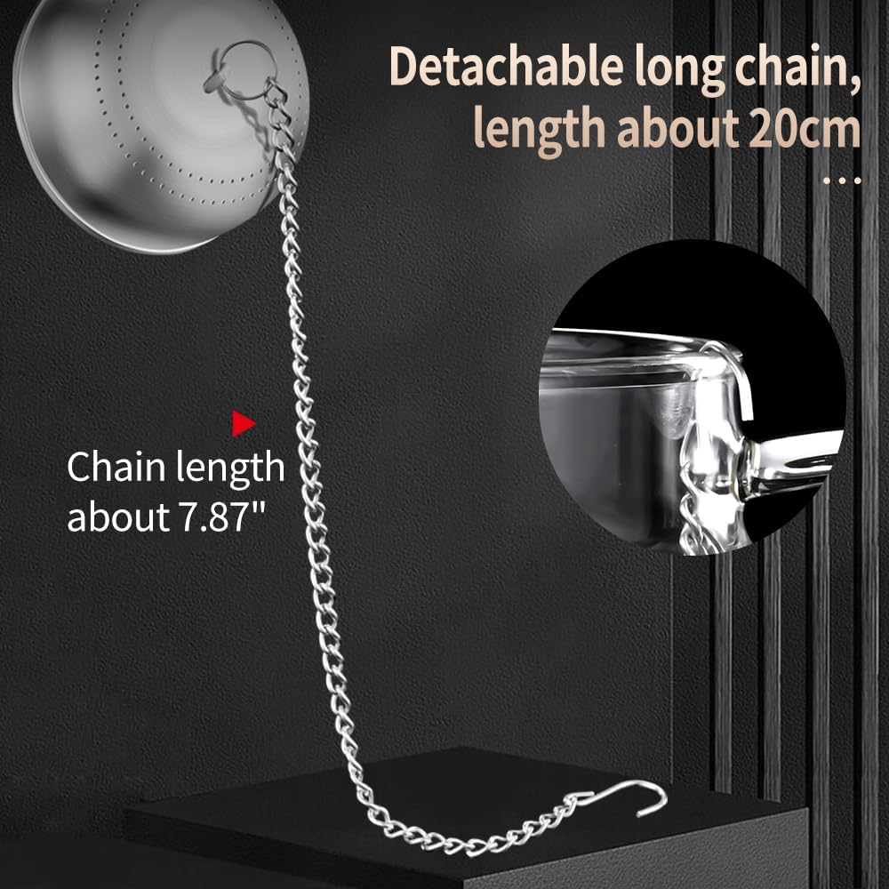 - Extended 7.87" Chains: The chain of the tea ball infuser is designed to be extended with an S-shaped hook which can catch securely on any rim and fit different size containers, such as mugs, teapots, and mason jars. The tea steeper is not only for loose tea leaves but also a spice filter, infusing spices when cooking. It's very applicable