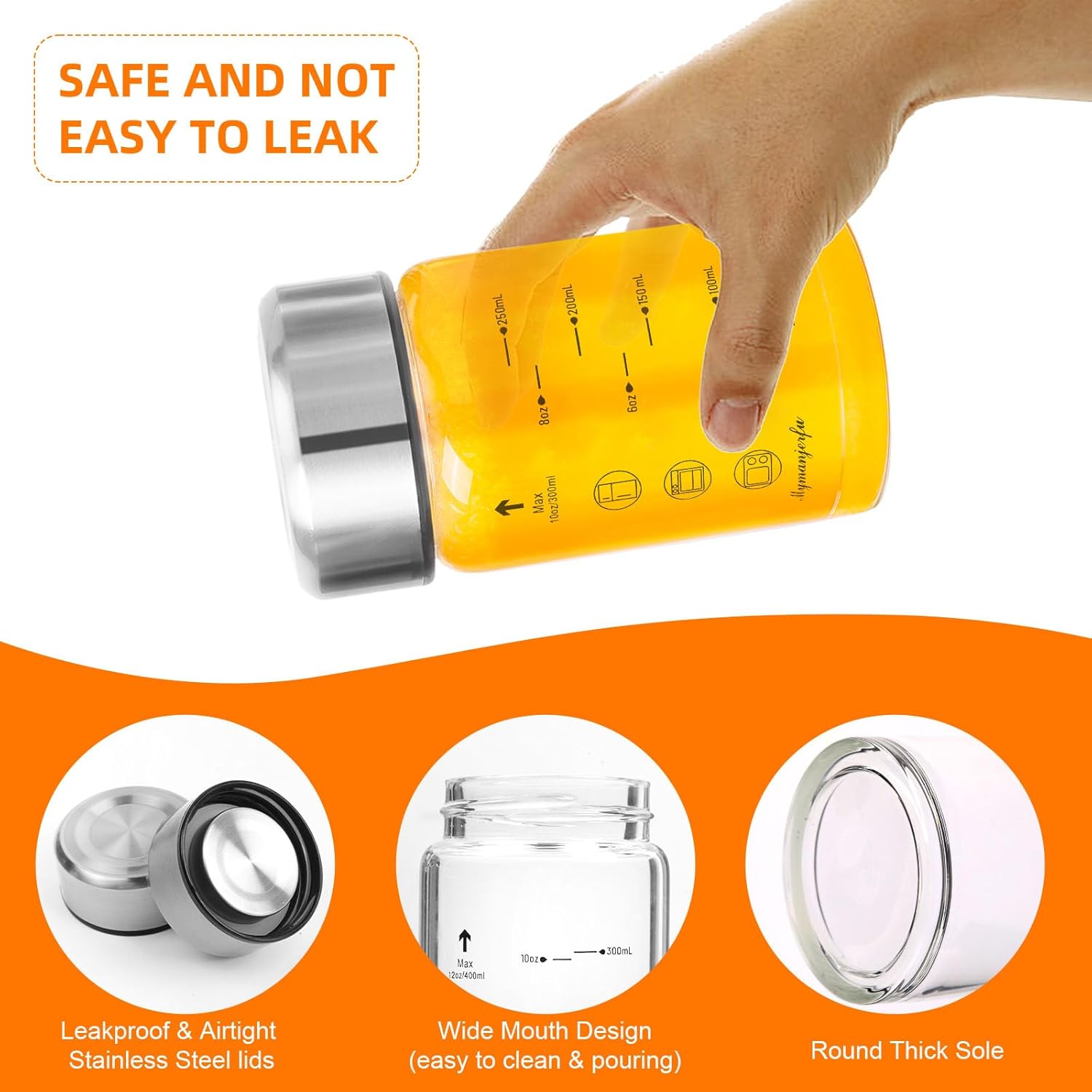 - 3. Sustainability in Style: Say goodbye to disposable plastic containers and hello to eco-friendly elegance. Our reusable glass bottles not only reduce waste but also add a touch of sophistication to your kitchen. they're a practical and sustainable choice for everyday use. (Do not put the lid in the dishwasher)