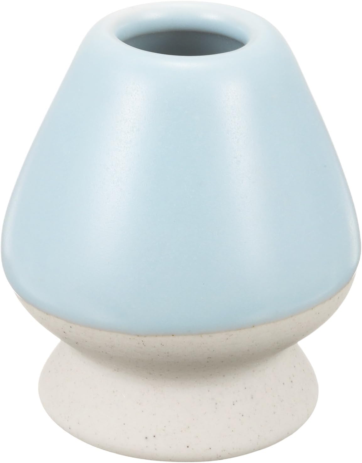 HARFINGTON Ceramic Chasen Stand 70mm Matcha Whisk Holder Teas Set Whisks Stand Traditional Matcha Tea Chasen Holder Tea Set Accessories for Tea Tasting, Beige/Cyan