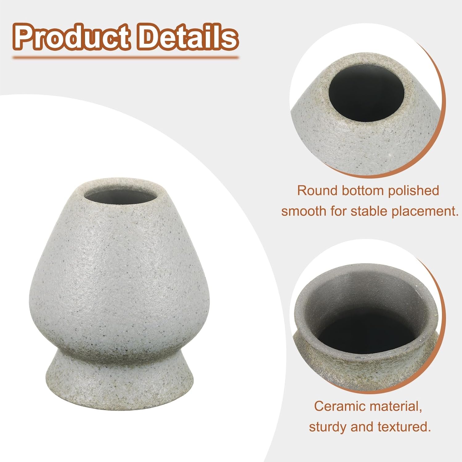 - Material - The tea whisk holder is made of ceramic, which is sturdy and textured, keeps it clean, and extends the life of the tea whisk. It adopts a simple design style, and the bottom is polished smoothly and finely, aiming to provide a stable and convenient support platform for placing the tea whisk.