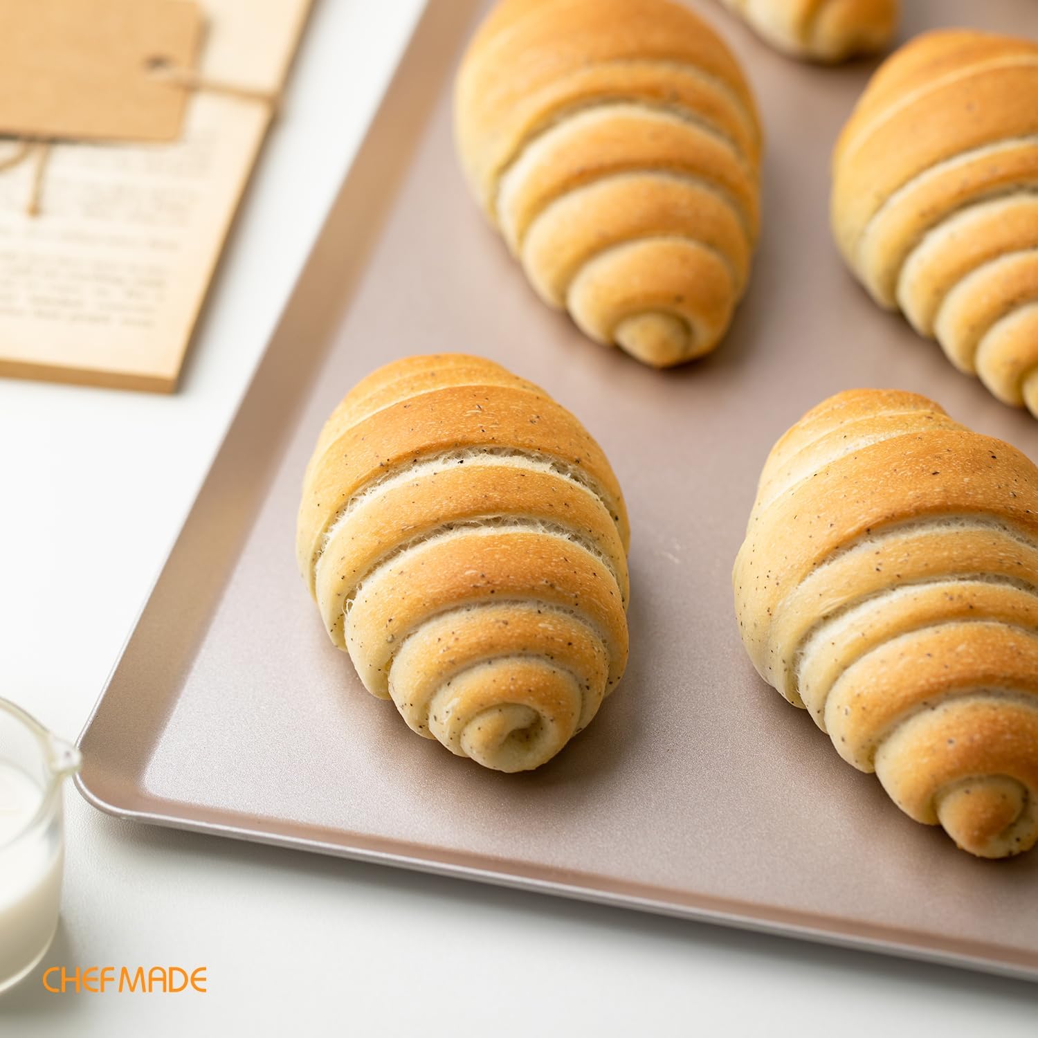CHEFMADE 15-Inch Baking Sheet Pan, Non-Stick Square Jelly Roll Bakeware for Oven Roasting Meat Bread Battenberg Pizzas Pastries 15.8" x 11.8" x 0.47" (Champagne Gold)