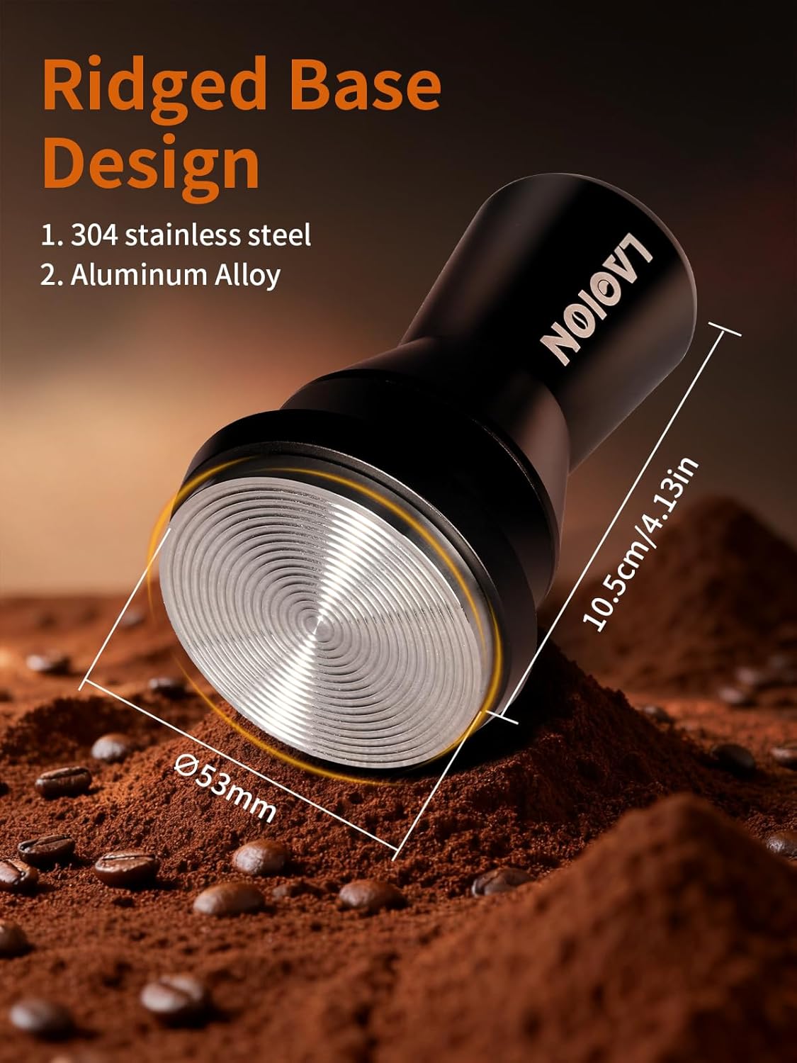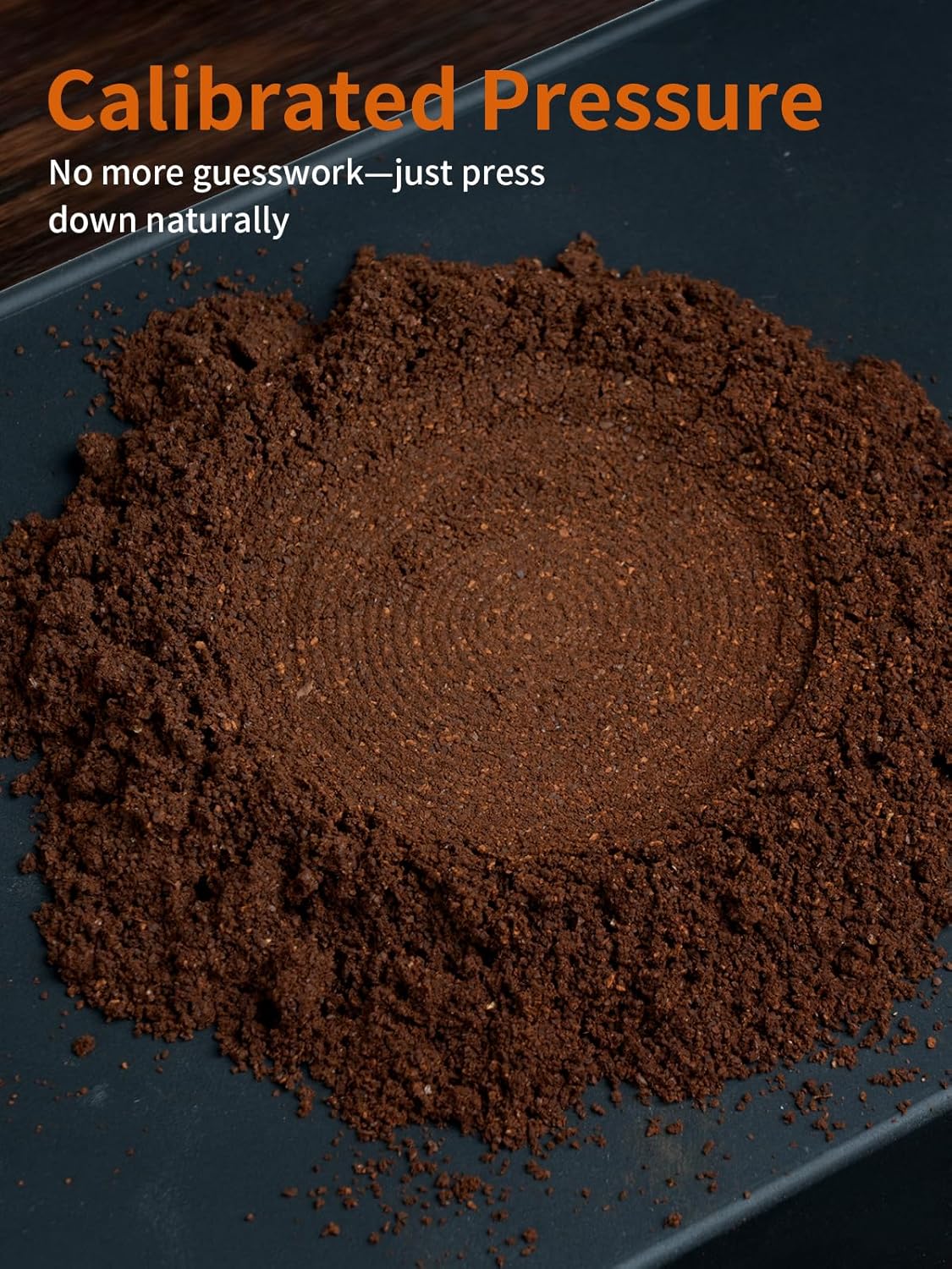 - 【Pressure for Even Extraction】Includes 15lb, 25lb, and 30lb spring inserts for customizable tamping force. This tamper’s built-in spring ensures consistent, even pressure every time—no guessing or excessive force needed.