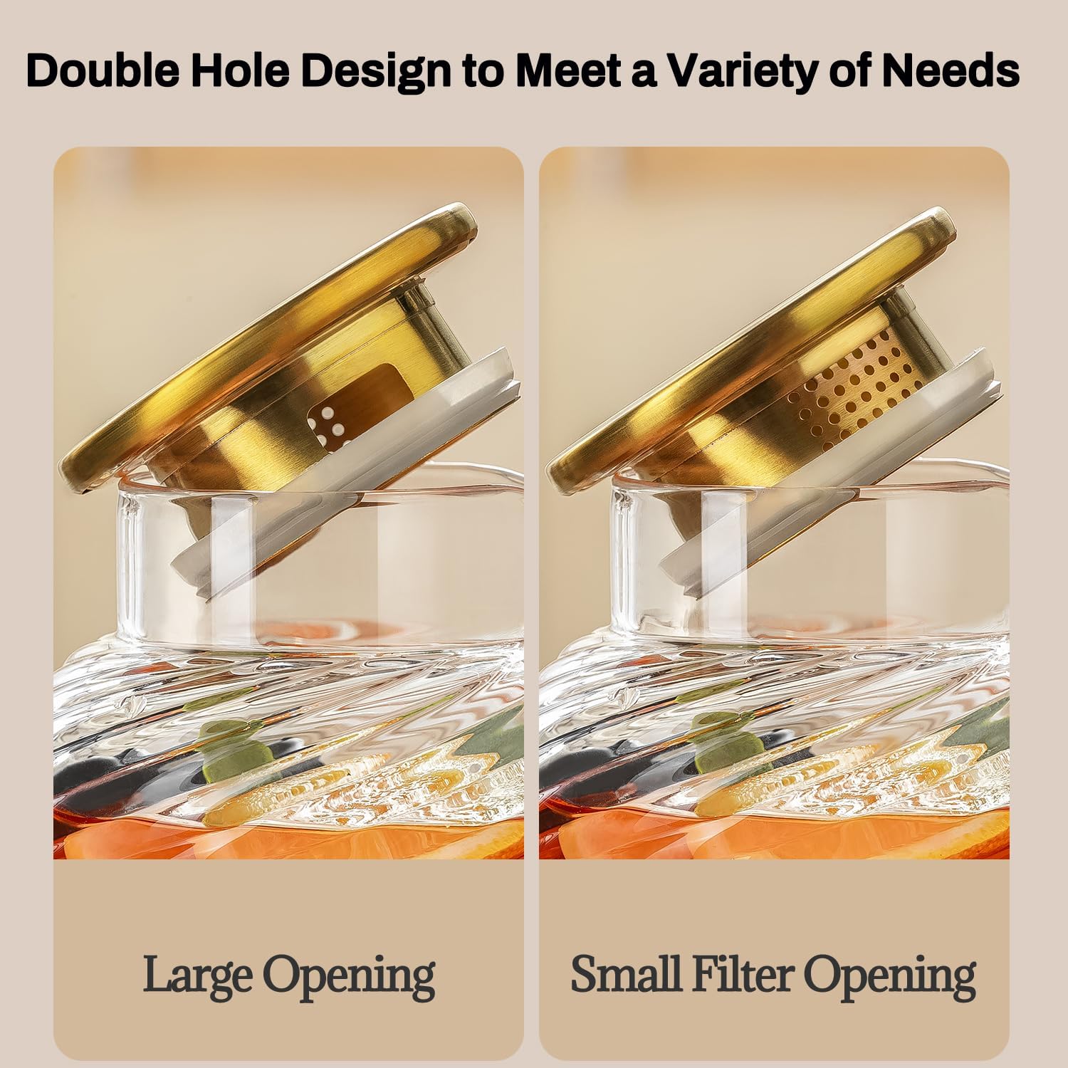 - 【100% STAINLESS STEEL LID WITH TWO OPENINGS】The lid is made of 100% stainless steel, so whether you use it for three or five years, you don't have to worry about the rust of the lid and the lid has two openings, which can be turned to pour water or the other side to filter beverages. The soft silicone seal keeps the lid firmly on the lid to prevent leakage.