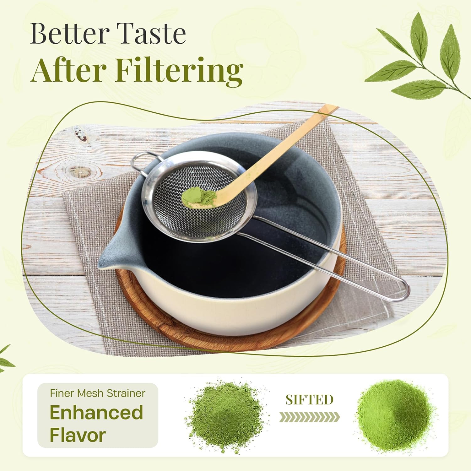 - 【All-in-One Matcha Ceremony Kit】 Our premium 8-piece matcha kit is designed to meet every need, includs 1 matcha bowl,1matcha whisk set,1 matcha whisk holder,1matcha sifter, 2 matcha spoon,1matcha spoon holder,1Tea cloth from preparation to clean-up, all while showcasing elegant packaging that enhances the ceremonial feel. Whether gifting a loved one or treating yourself, this meticulously crafted set guarantees to impress with its high quality and graceful design. Complete with every tool you need.