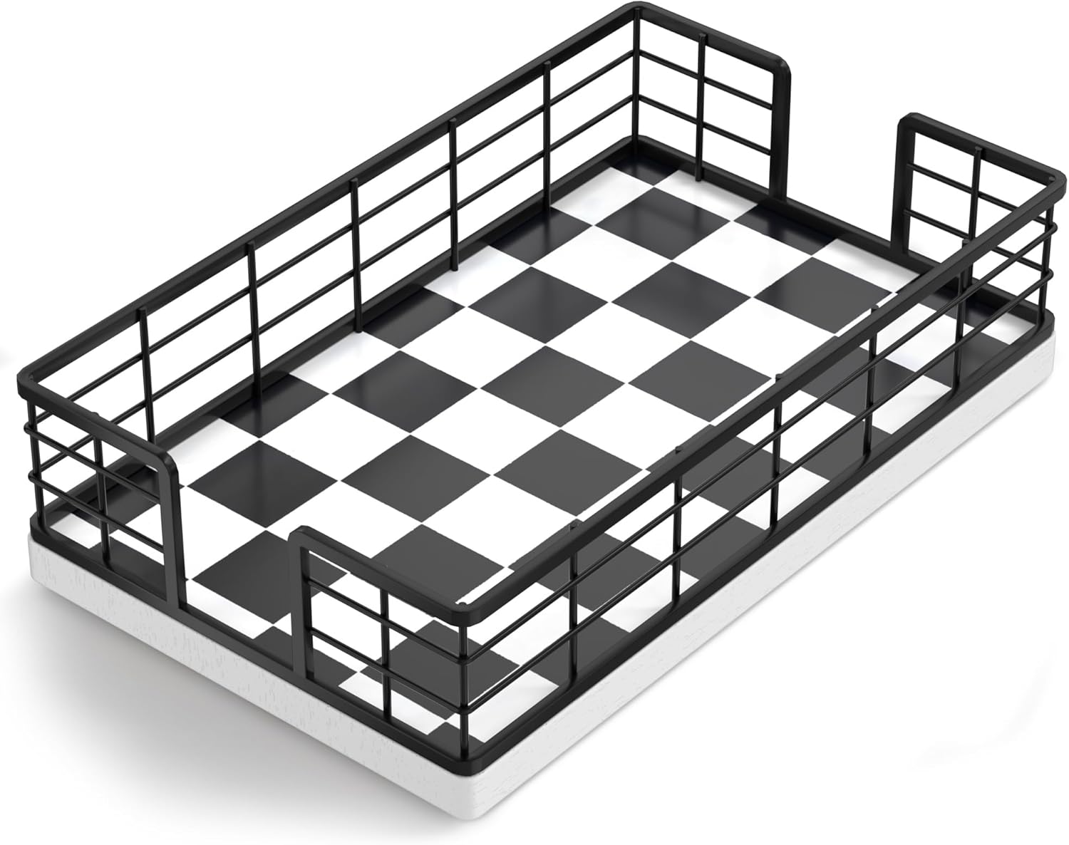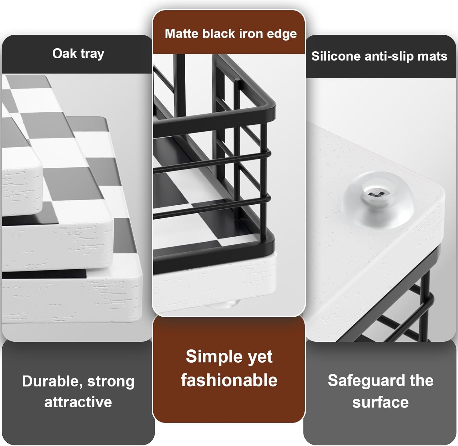 - Cost-effective: No assembly required, easy to clean. The tray crafted from iron and oak is simple and attractive. The solid bottom ensures items won't fall. With silicone non-slip pads, it provides both anti-slip functionality and better protection for surfaces