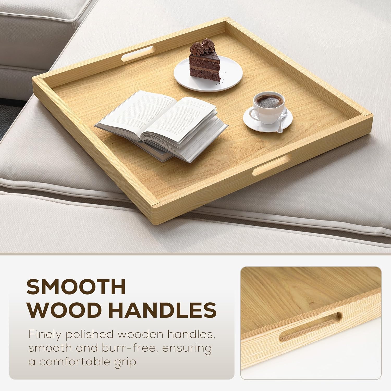 Axeman 24 Inch Large Square Wooden Ottoman Tray for Living Room|Extra Large Serving Tray with Handles for Coffee Table, Breakfast|Decorative Wood Tray for Ottoman Couch Sofa Kitchen|Natural
