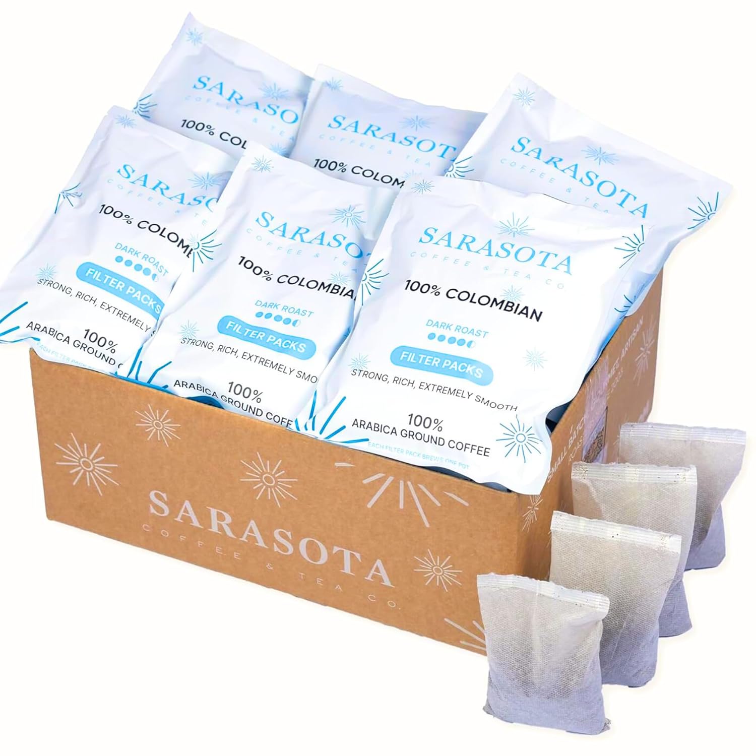 100% Colombian Dark Roast Ground Coffee in Filter Packs | Low Acid Mold Free Premeasured Pouches | Sampler Packets | Gourmet Powder Bags for 10–12 Cup Drip Maker | Highest Rated Individual Coffee