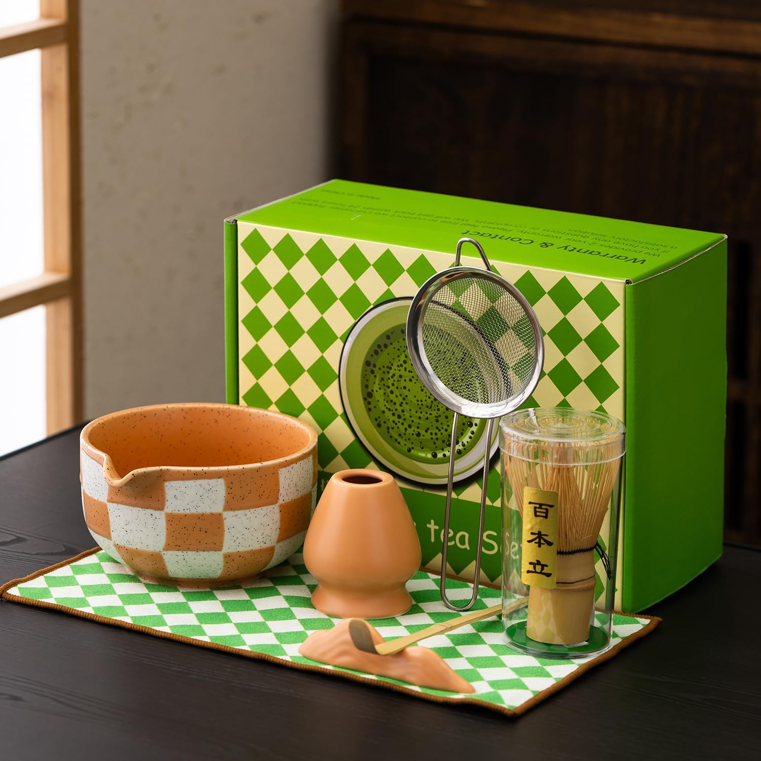 - PRESENTATION: Decorative green and white checkered mat adds authentic style while protecting surfaces during tea preparation