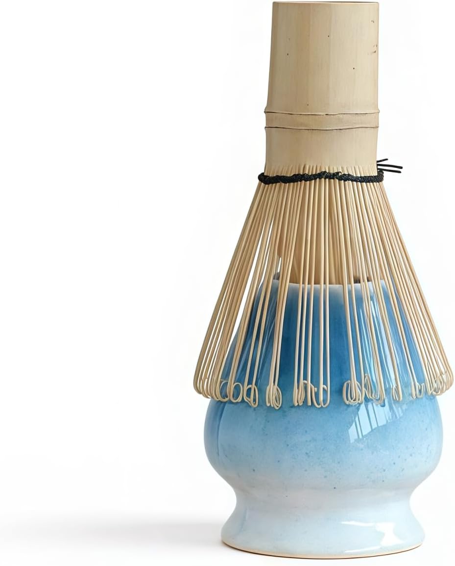 - All-in-One Matcha Whisk Set for Home or Ceremony- This 7-piece matcha set includes a handcrafted matcha bowl with spout, 100-prong bamboo matcha whisk (chasen), ceramic whisk holder, bamboo scoop (chashaku), scoop rest, and stainless steel matcha sifter. Ideal for beginners or experts seeking a complete matcha kit for authentic tea preparation.