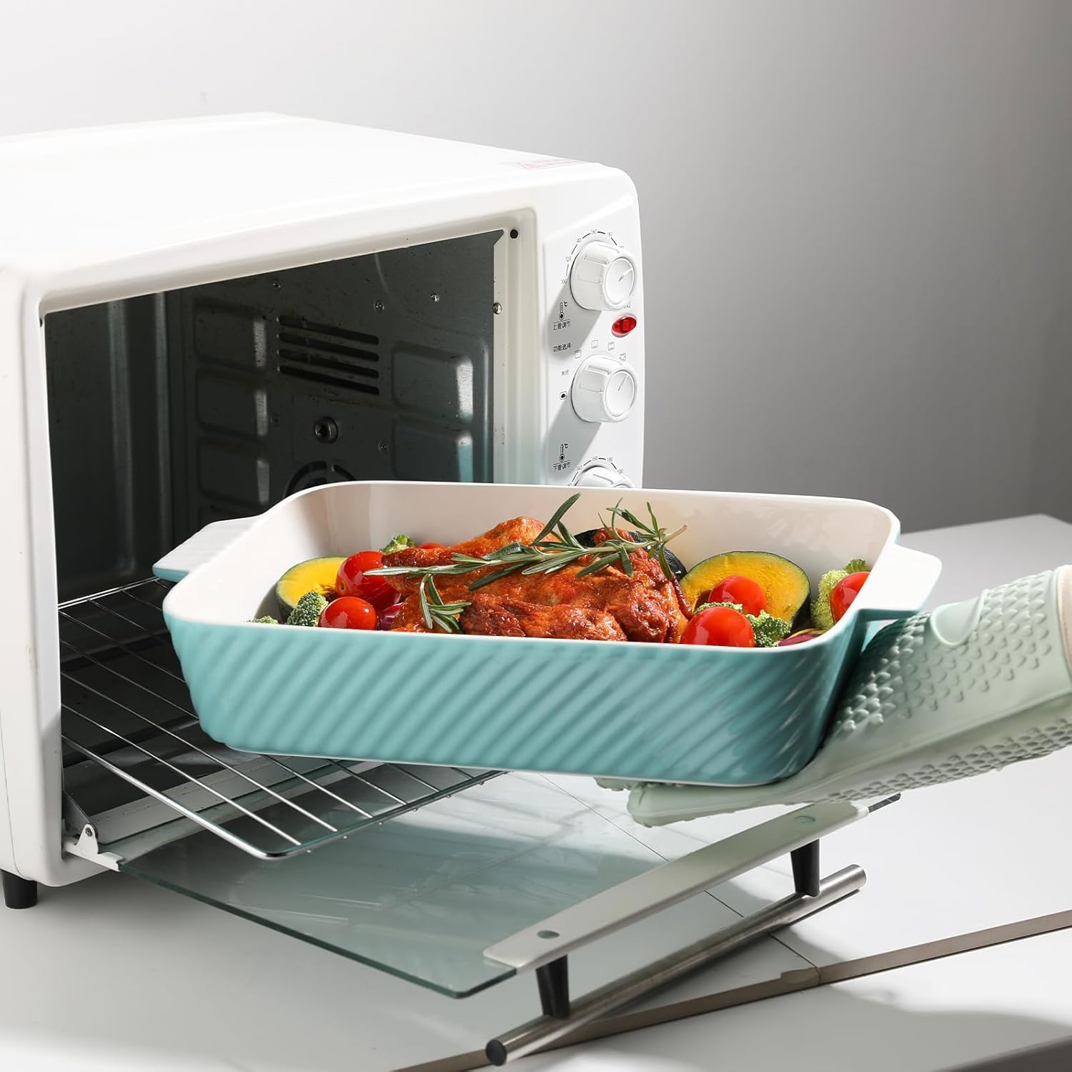 - Worthy Results at Home - Unlock professional browning magic with our intelligently ribbed ceramic surface! Simple lines outline an extraordinary kitchen experience. Fresh colors are matched with a glossy glaze to create a gourmet feast in the kitchen. Plus, the baking pans transition seamlessly from oven-to-table, radiating rustic elegance.