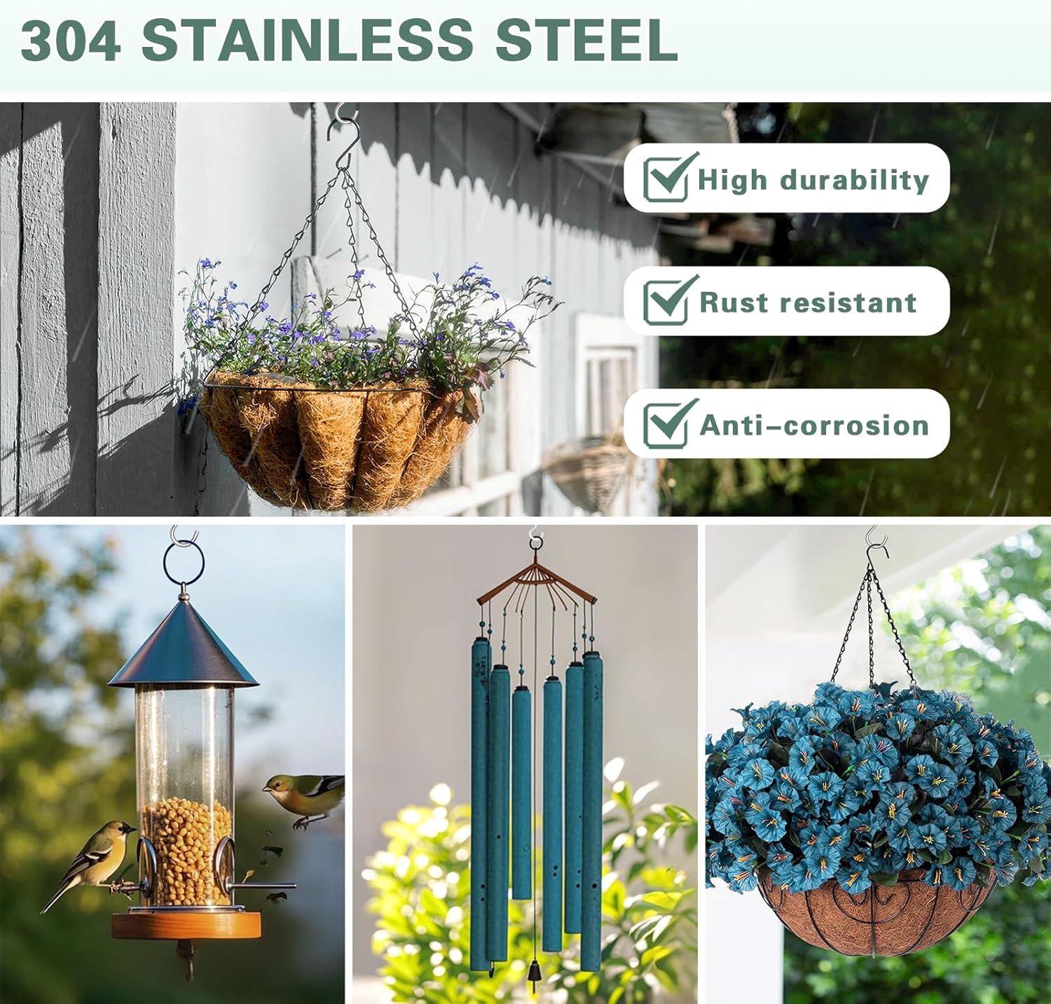 - Multi-Purpose Hooks for Indoor & Outdoor Use Ideal for a wide range of spaces – from kitchens and workshops to patios and closets – these screw-in cup hooks help you hang mugs, string lights, jewelry, keys, bird feeders, and more. Your go-to solution for decluttering and decorating.