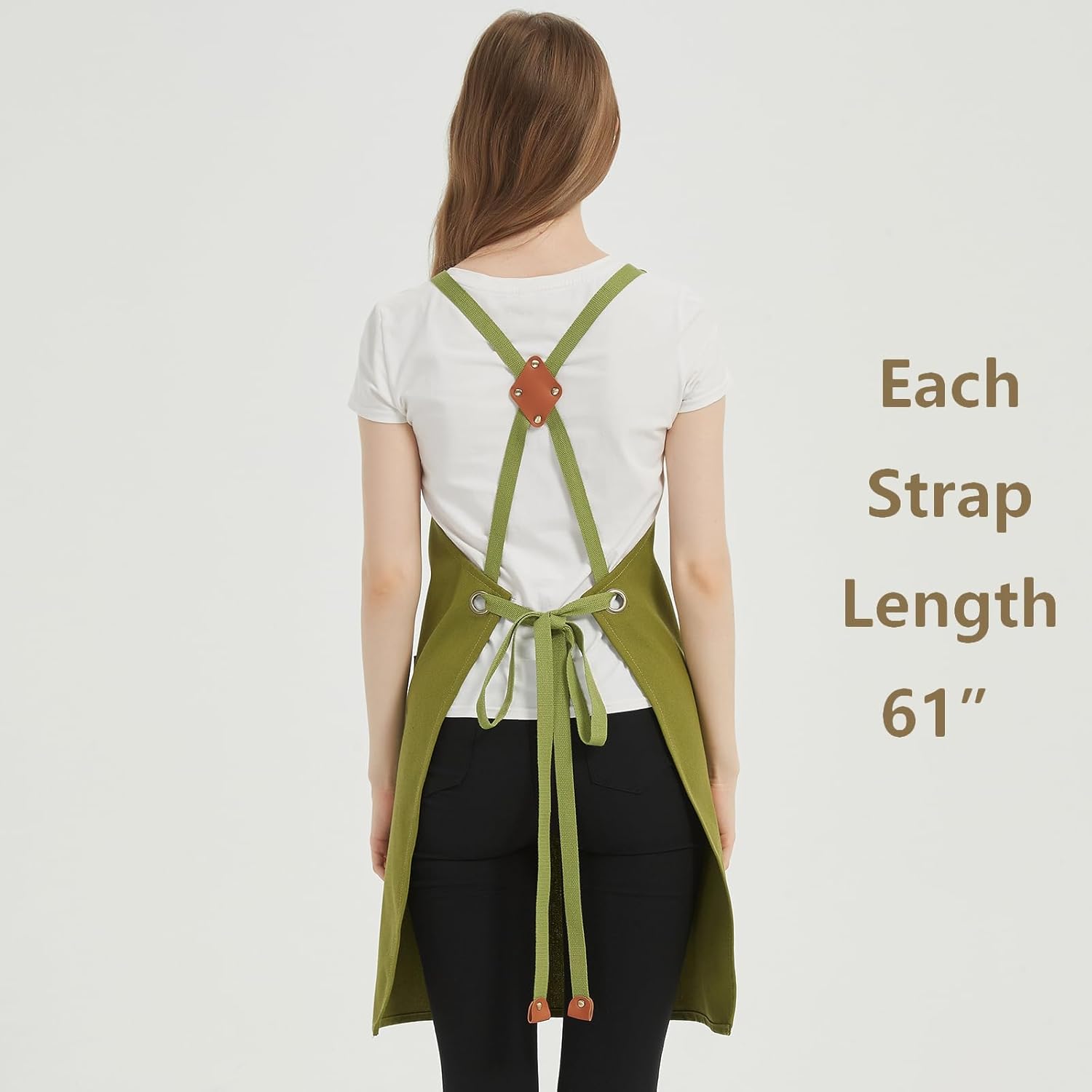 AFUN Chef Aprons for Women Men with Large Pockets, Cotton Canvas Cross Back Water Repellent Work Apron, Size M to XXL (Armygreen)