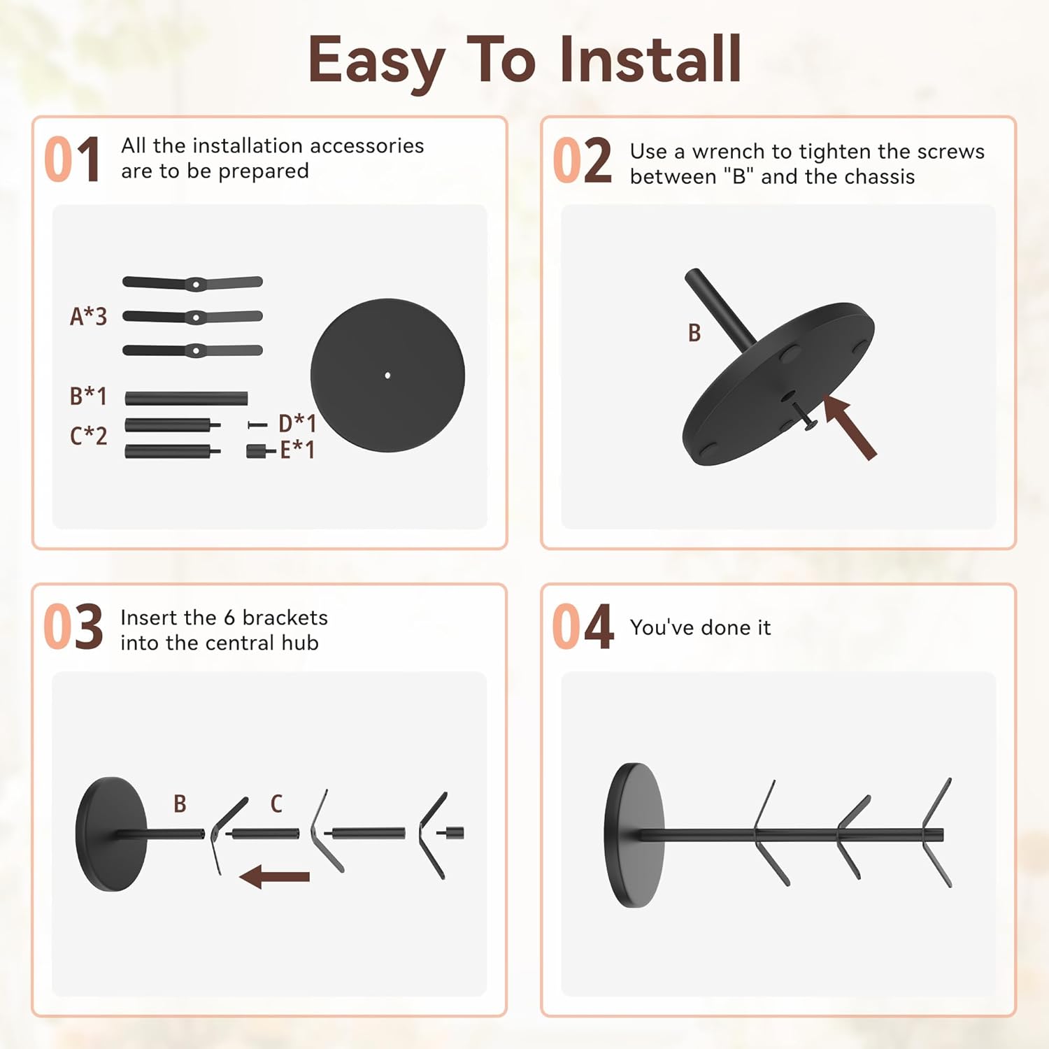 - 【Easy to Install】The package includes all the necessary installation accessories, tools and instructions, making assembly quick and easy. Simply fix the base with screws, then insert the branches into the slots in the main trunk. The process is stress-free.