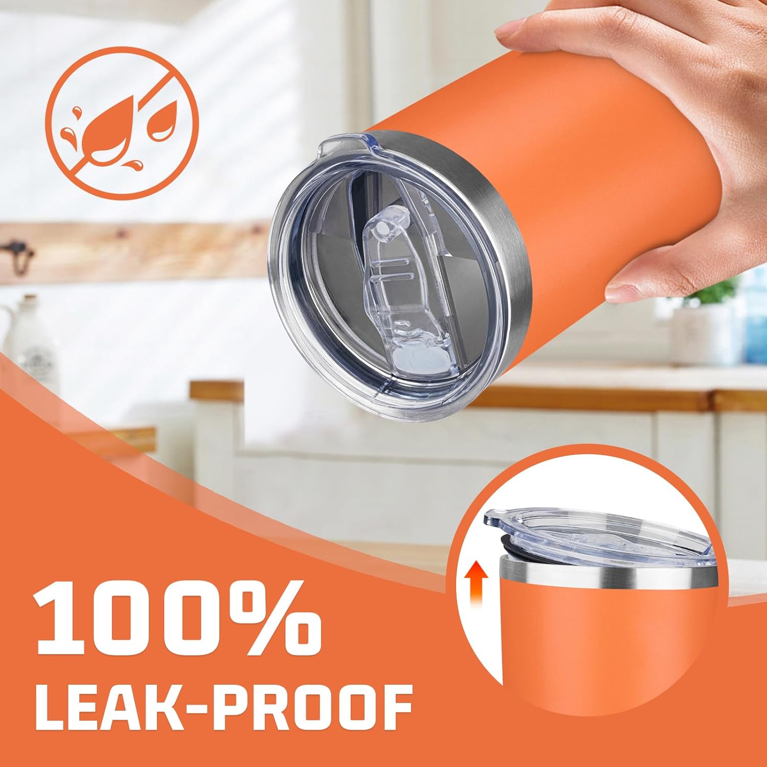 - โ ๐๐๐-๐ ๐๐๐ ๐๐ง๐ ๐๐๐๐ค-๐ฉ๐ซ๐จ๐จ๐ ๐๐ข๐: The 20 oz insulated coffee mug is equipped with a sliding lid which is BPA-free and healthy and the seal ring of the lid fits snugly into the mouth of the cup. When the sliding lid is closed, you don't have to worry about spilling your drink, even if the coffee tumbler is accidentally tilted.Our 20oz tumbler with lid for your daily or travel drinking needs, always hydrated.