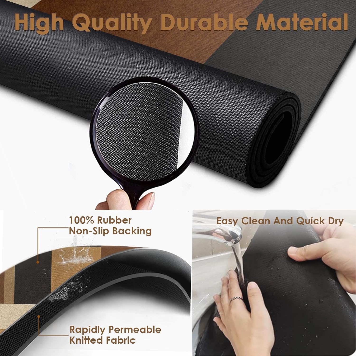 - [Easy to Clean] The coffee bar mat does not need to be cleaned frequently. Just wipe it with wet cloth or rinse with water when cleaning, and then hang to air dry. This kitchen counter mat can not be washed in washing machine or dishwasher.You can keep it clean by simply wiping or rinsing.