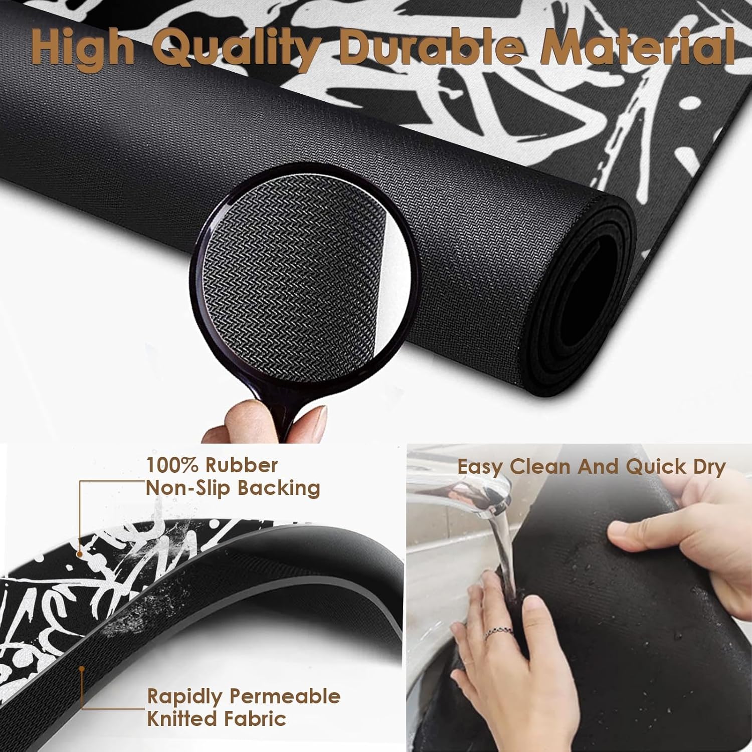 Arttown Coffee Mat for Countertops, Graffiti Abstract Letters Old School Black Dish Drying Mat 2 Pcs for Kitchen Bar Accessories, Coffee Maker Espresso Machine Dish Rack Hide Stain Rubber 12x19in