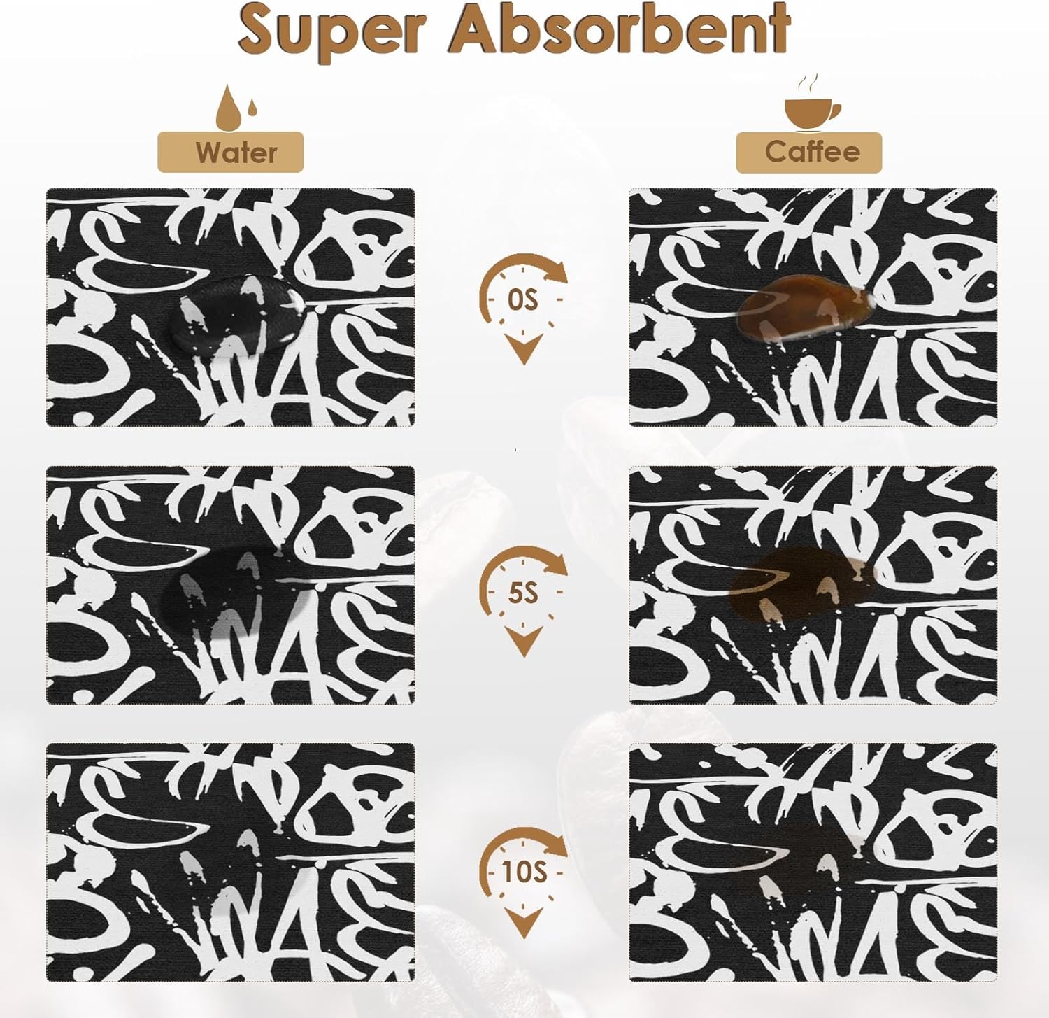 - [Super Absorbent] The coffee mats is reliable to absorb water quickly, no matter splashing coffee, or scattered water droplets, all gone real quick, the high density design makes air dry in seconds, and always keeps the table clean and tidy. It is one of practical and trustworthy coffee bar accessories.