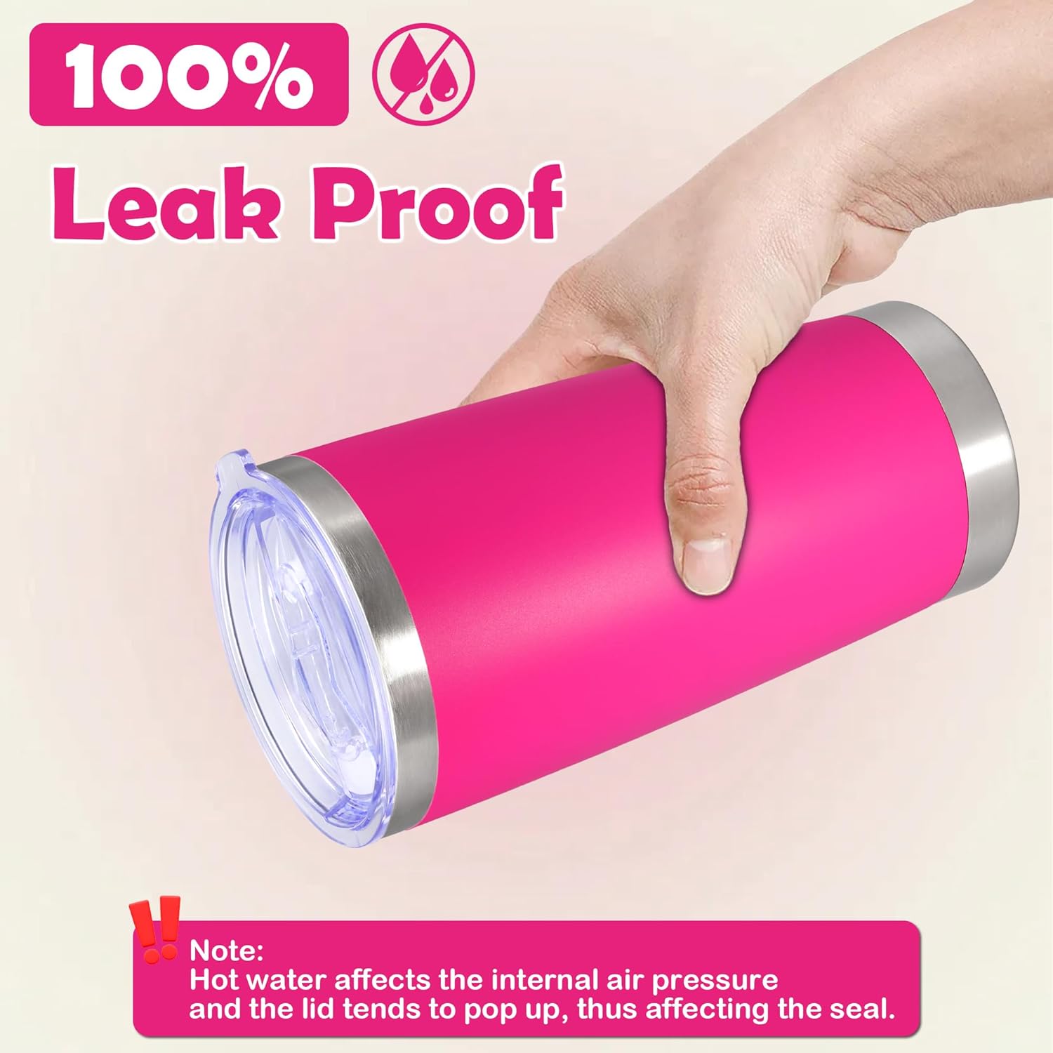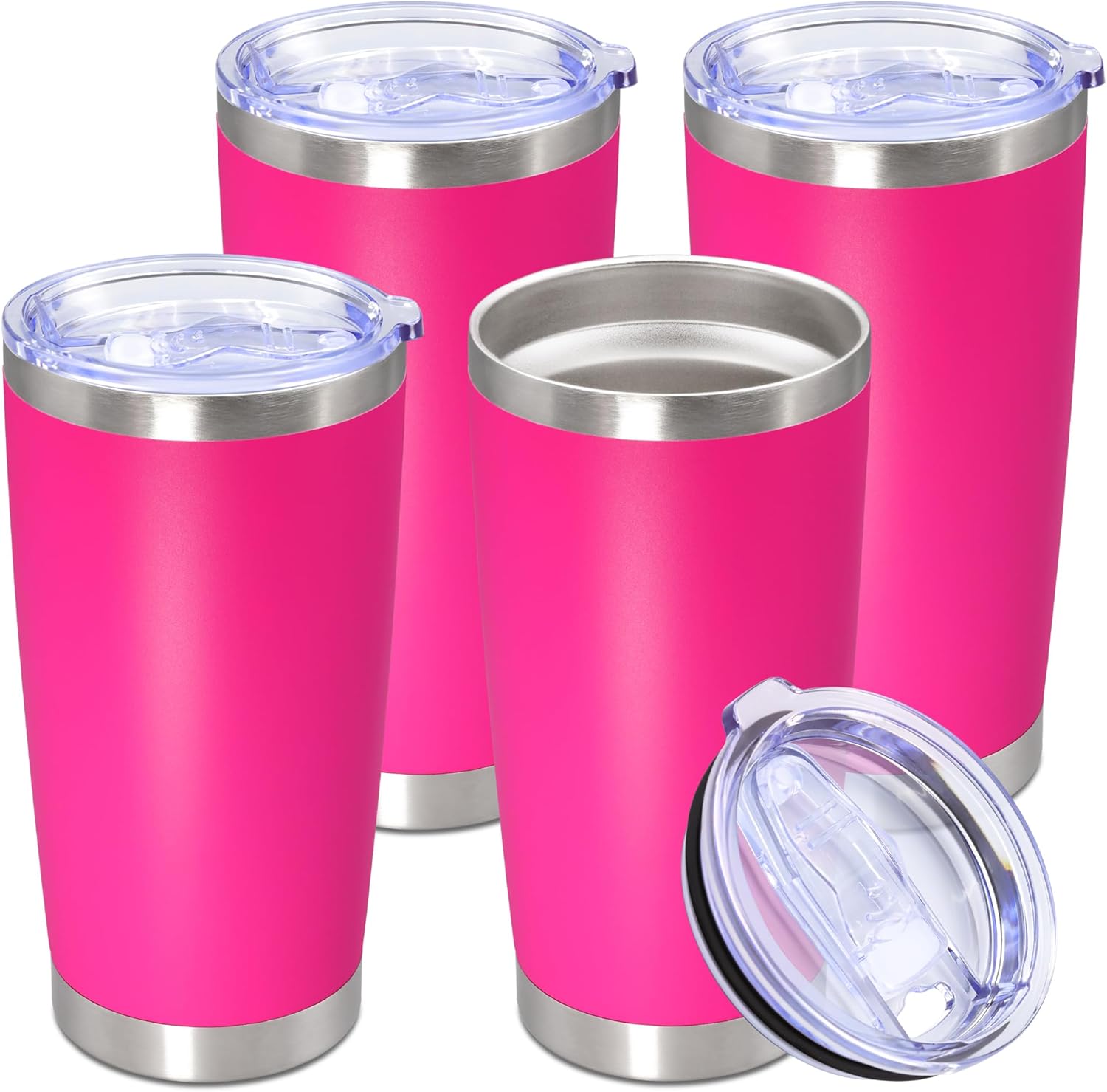 20oz Tumbler Stainless Steel Tumbler Cup with Lid Vacuum Insulated Double Wall Travel Mug, Durable Powder Coated Travel Coffee Tumbler Mug for Hot & Cold Drinks, Hot Pink,4 Pack