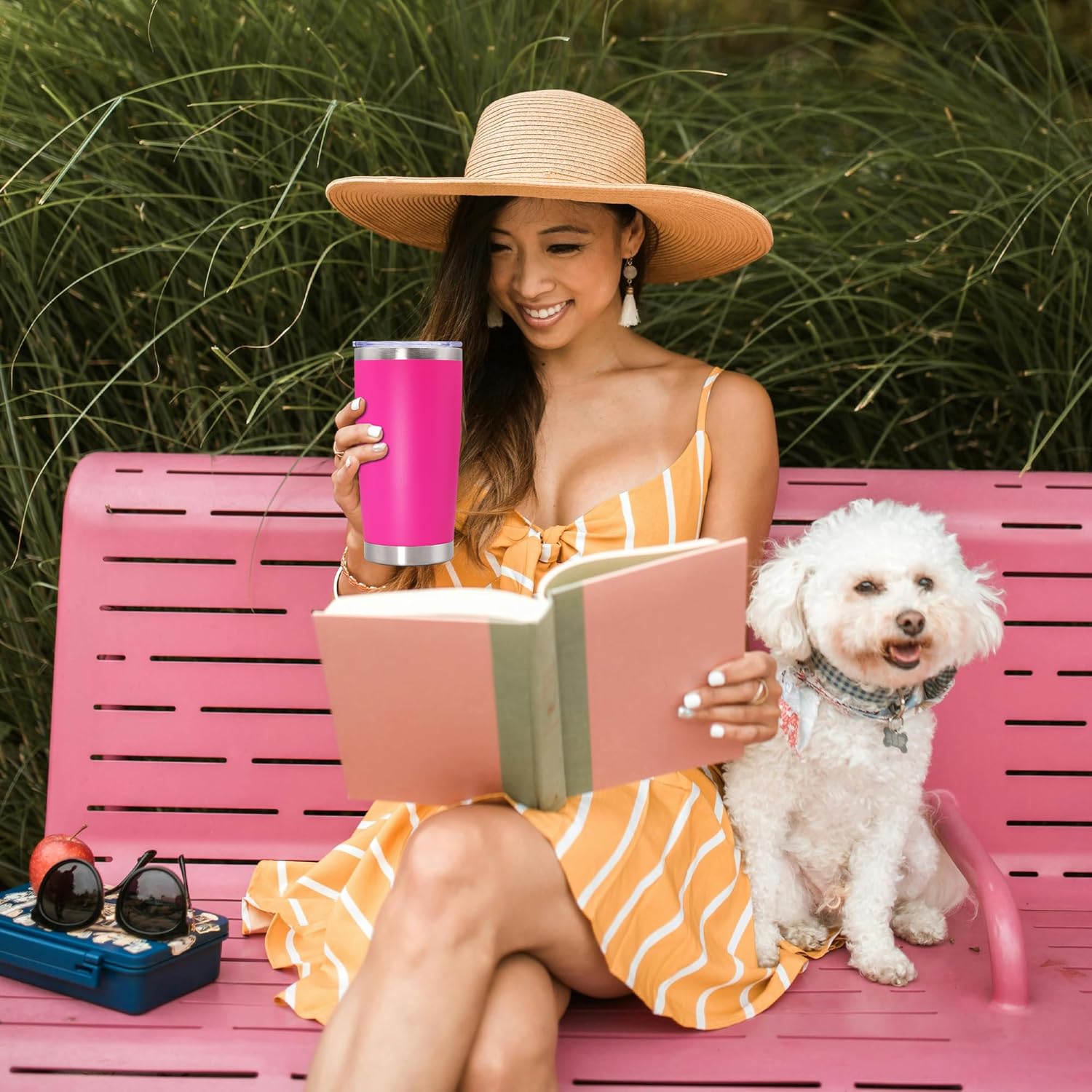 20oz Tumbler Bulk Stainless Steel Tumbler Cup with Lid Vacuum Insulated Double Wall Travel Mug, Durable Powder Coated Travel Coffee Tumbler Mug for Hot & Cold Drinks, Hot Pink,8 Pack