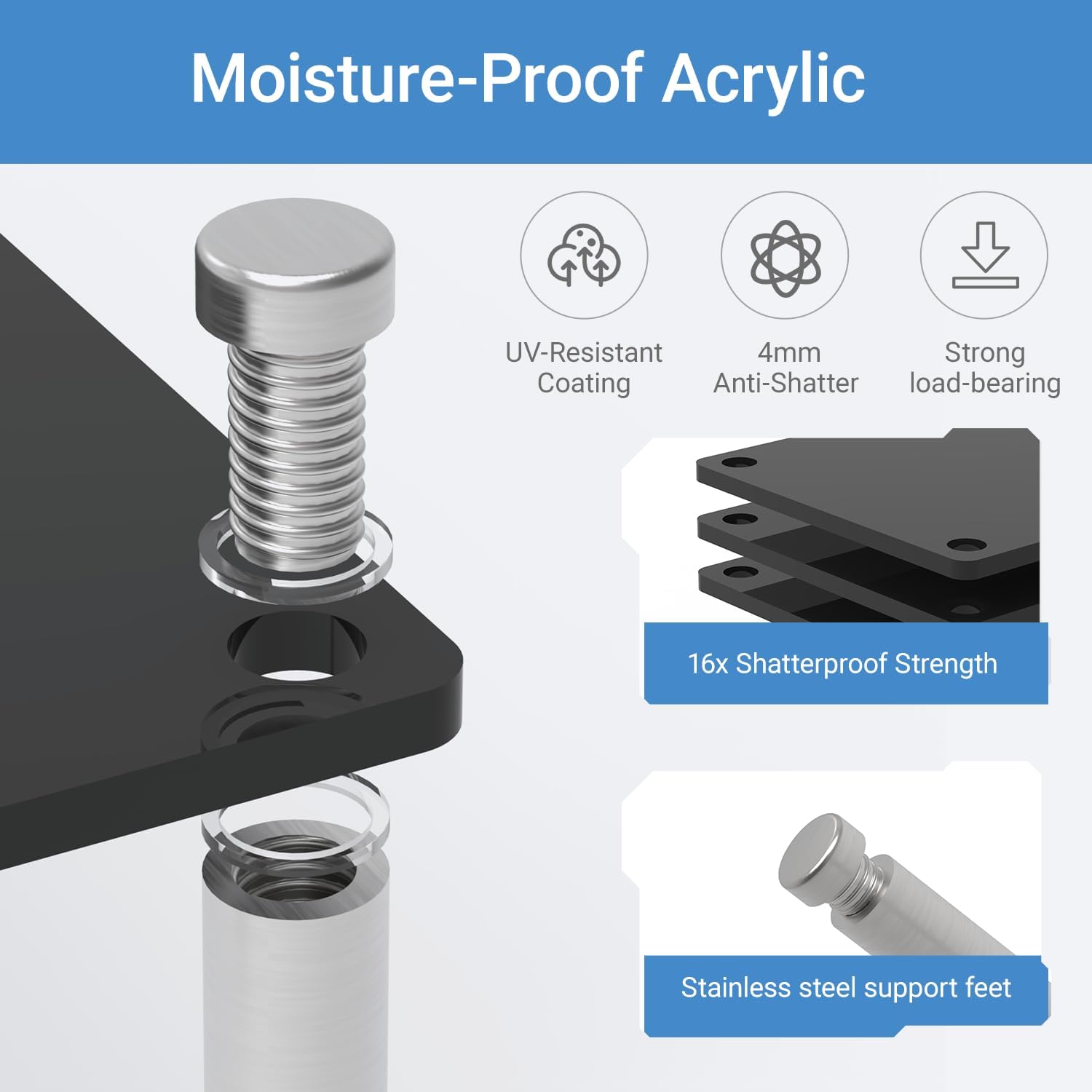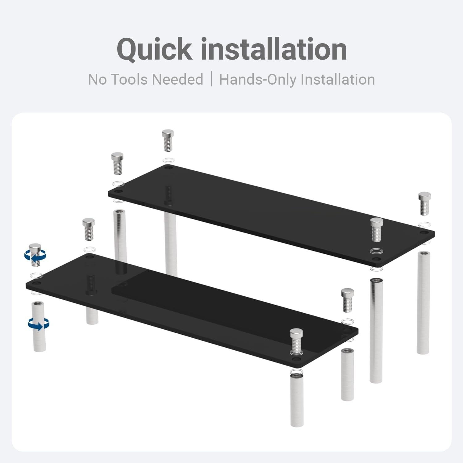 - Tool-Free Assembly – No screwdriver needed! Assemble this 2-tier riser in minutes using pre-cut acrylic panels and stainless steel supports. Disassembles flat for storage.