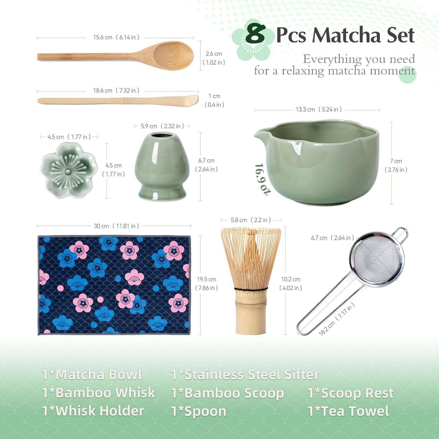 - Style : Artistic Floral-Inspired Matcha Set