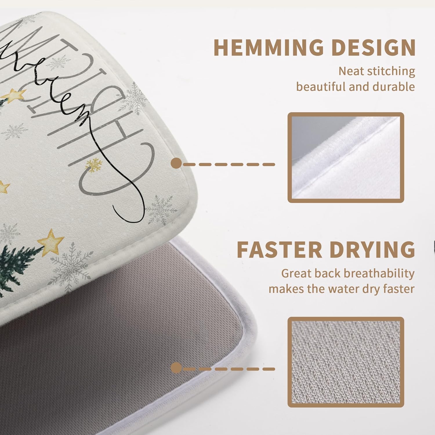 - [Material]: The surface of this Merry Christmas Tree kitchen drying mat is made of absorbent microfiber and the middle is made of composite sponge. Winter Large microfiber dish drying mat can be easily rolled up and folded for storage or hanging.