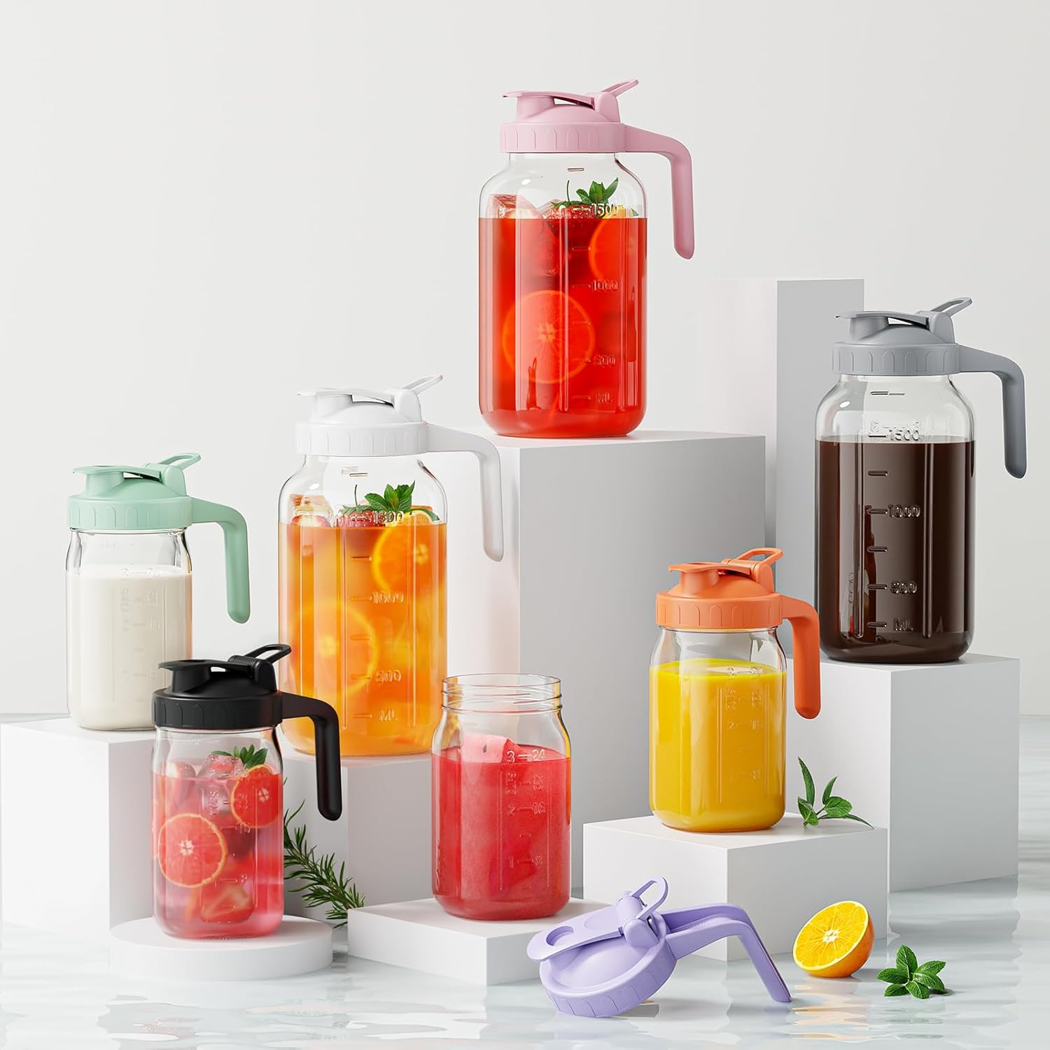 - 【Spout Sealed Lid with Handle】 - The 32oz jug with silicone seal in the pour spout lid, Leak proof and better maintain the freshness and taste of the beverage, avoid mixing the smell of other foods in the fridge. The flip-top lid is easy to pour and the jug is securely fastened to the lid