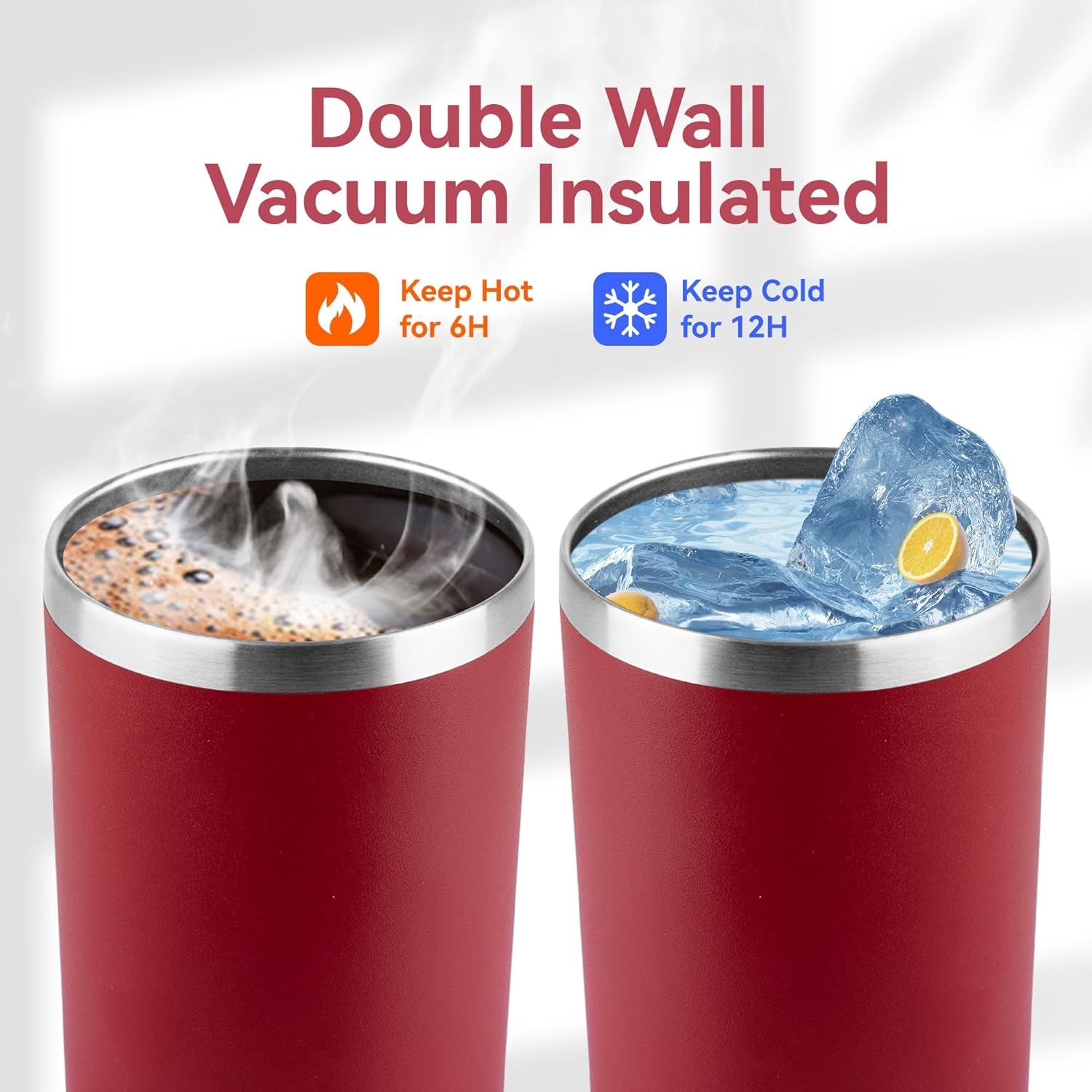 - Dual Vacuum Insulation: This skinny tumbler can keep ice cubes from melting for 12 hours and coffee hot for 6 hours—by blocking 99% of heat transfer through a vacuum insulation layer, while preventing external condensation.