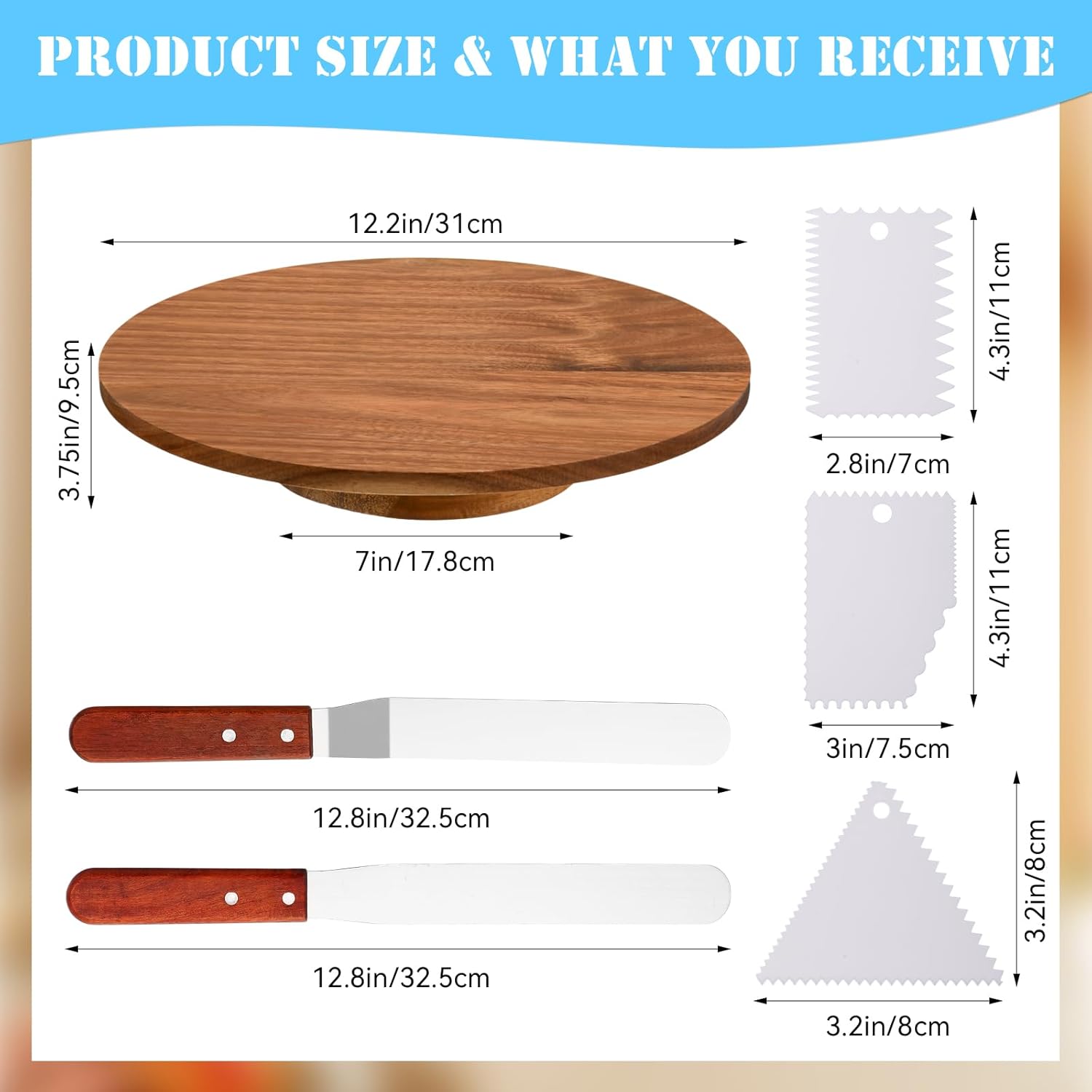 - Rotating Cake Turntable: this sturdy turntable features a smooth natural wood surface that allows easy rotation for even frosting application and precise decorations from all angles; It perfectly combines aesthetics with functionality; The bidirectional rotation design makes it easy to use for both right-handed and left-handed decorators