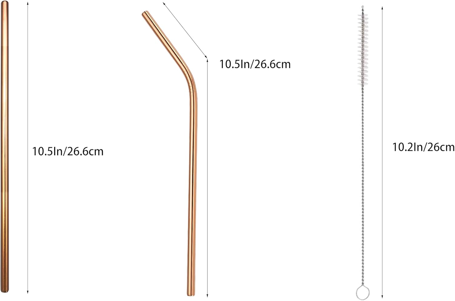10 Pcs Stainless Steel Straws, Reusable Drinking Straws, 5 Straight + 5 Bent Metal Straws Set With 2 Pcs Cleaning Brushes (Rose Gold, 10.5 Inch)