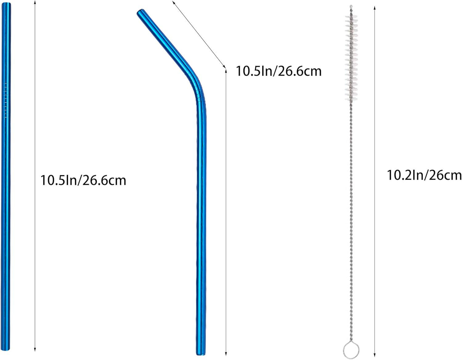 10 Pcs Stainless Steel Straws, Reusable Drinking Straws, 5 Straight + 5 Bent Metal Straws Set With 2 Pcs Cleaning Brushes (Blue, 10.5 Inch)