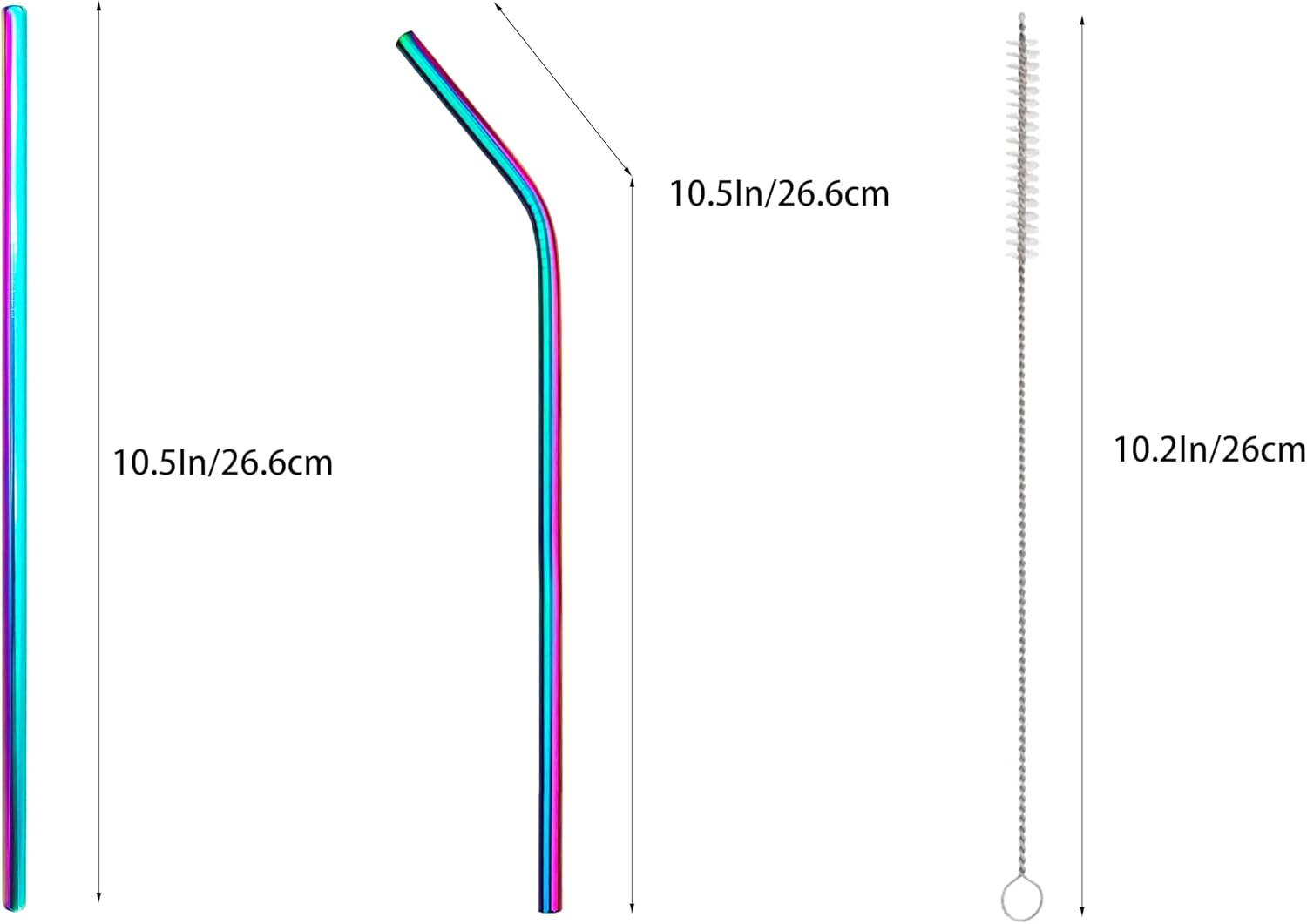 10 Pcs Stainless Steel Straws, Reusable Drinking Straws, 5 Straight + 5 Bent Metal Straws Set With 2 Pcs Cleaning Brushes (Colorful, 10.5 Inch)