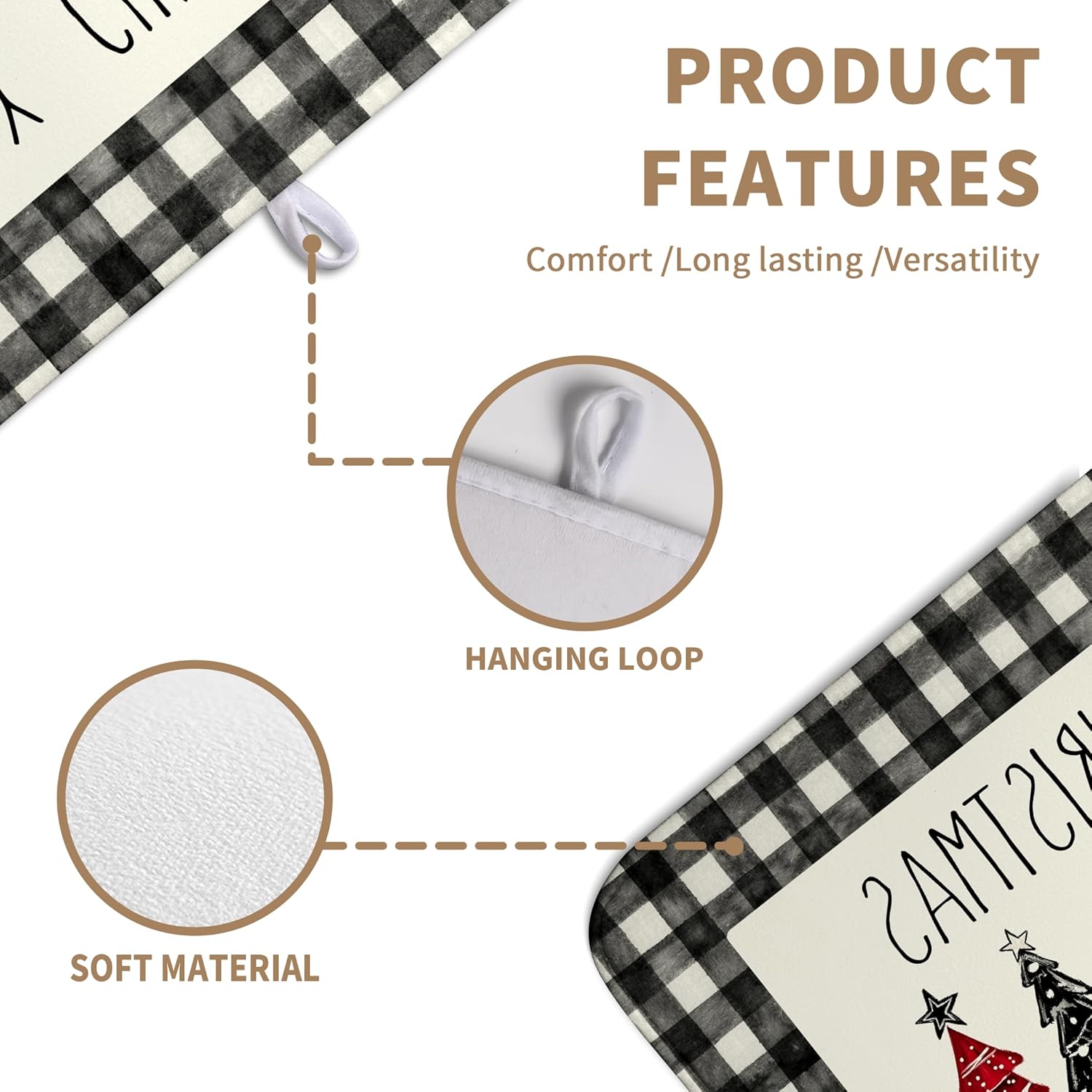 - [Quick Absorption]: Made of absorbent material, our Merry Christmas Buffalo Plaid dish drying mat Winter Xmas Large kitchen mat dish dryer mat for kitchen absorbs water stains quickly, keeping your table top dry and clean, avoiding water stains and leaks, providing you with a pleasant and dry dining or working experience.