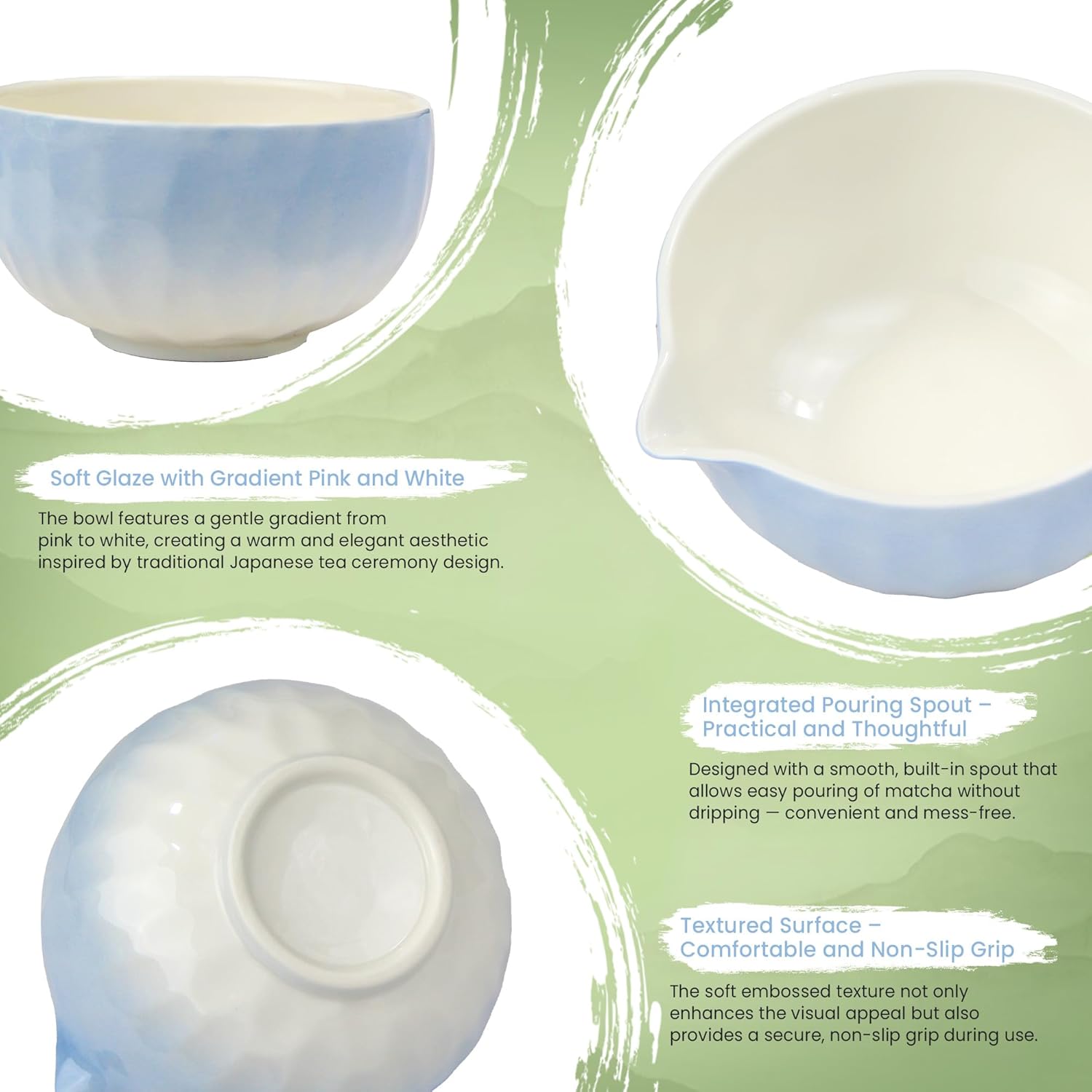 - Natural Materials, Authentic Feel – Handmade ceramic bowl and natural bamboo tools for a sustainable and tactile matcha experience.