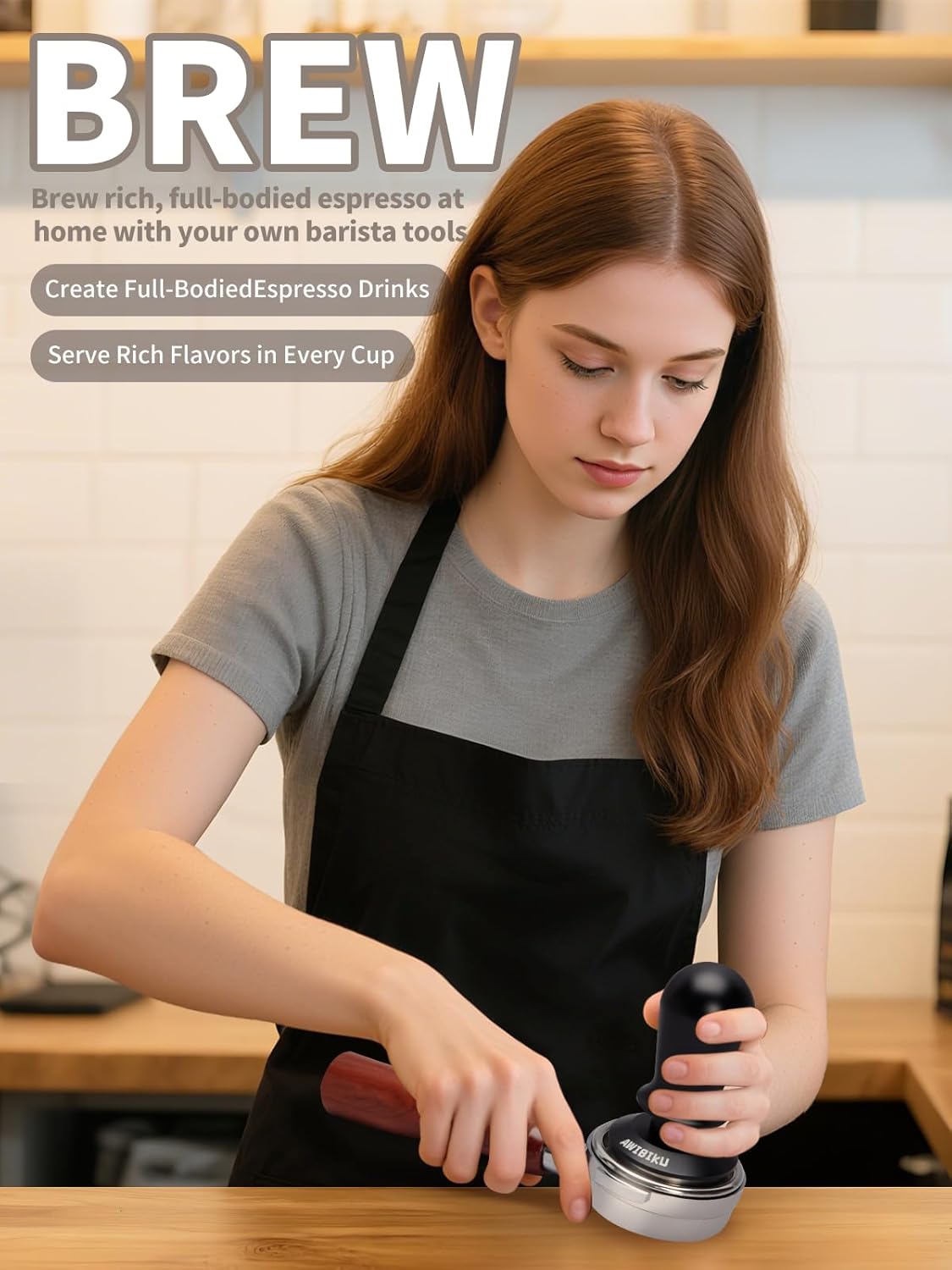 - 【Spring-Loaded 53.3mm Espresso Tamper】This espresso tamper features a calibrated 30lb spring that ensures precise tamping pressure every time, guaranteeing a flat, even puck with minimal effort. The ergonomic handle makes tamping both comfortable and accurate, helping you achieve true coffee shop–quality extractions. A must-have espresso tamper tool for anyone serious about coffee.
