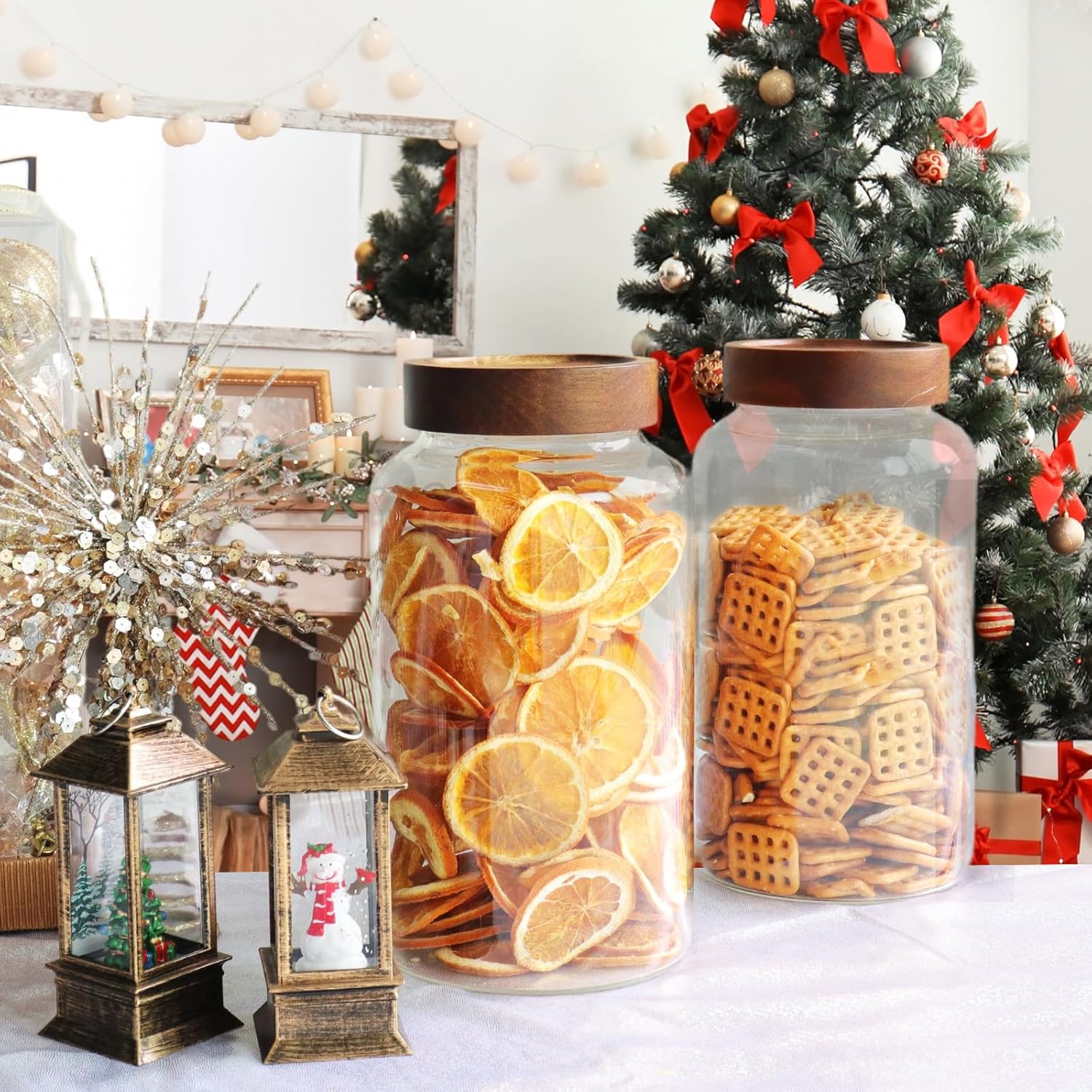 - 【WIDE APPLICATIONS】 Glass kitchen canisters for pantry organization and storage are suitable for storing various dried ingredients to retain their freshness, with clear glass jars, you can easily see inside and quickly find the ingredients you need.Glass jars with wood lids perfect for storing dry food , such as,cookies,dried beans,pepper,oatmeal,jams,chutneys, rice, flour, tea, coffee, biscuits, candy,cheese,flour, sugar, seeds,etc. Keep your kitchen tidy and safe,saving space and convenient .
