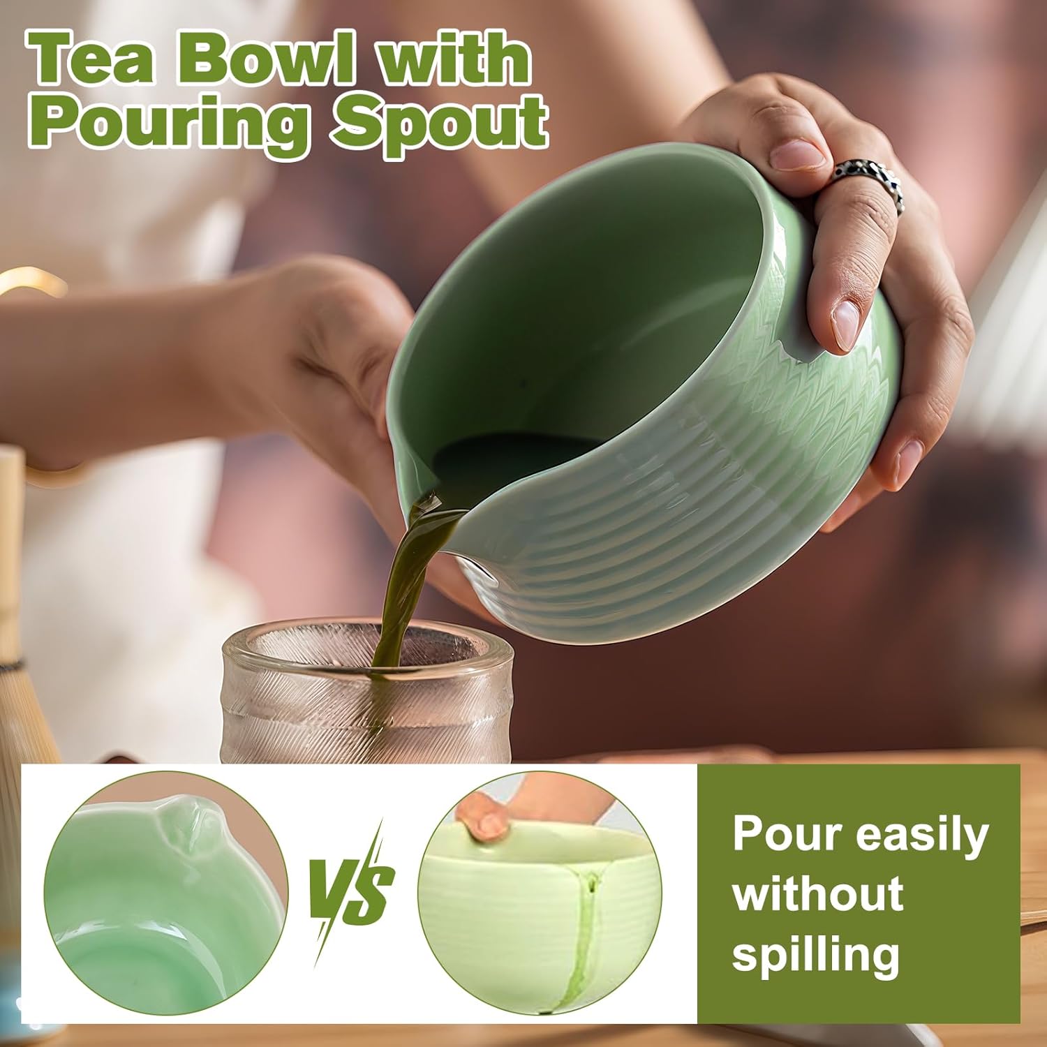 - Effortless Tea Ritual: ①Sift matcha powder with the stainless steel sifter. ② Whisk vigorously in the wide-matcha bowl using the bamboo chasen. ③ Pour smoothly via the spout design—no spills. Dishwasher-safe for quick cleanup.