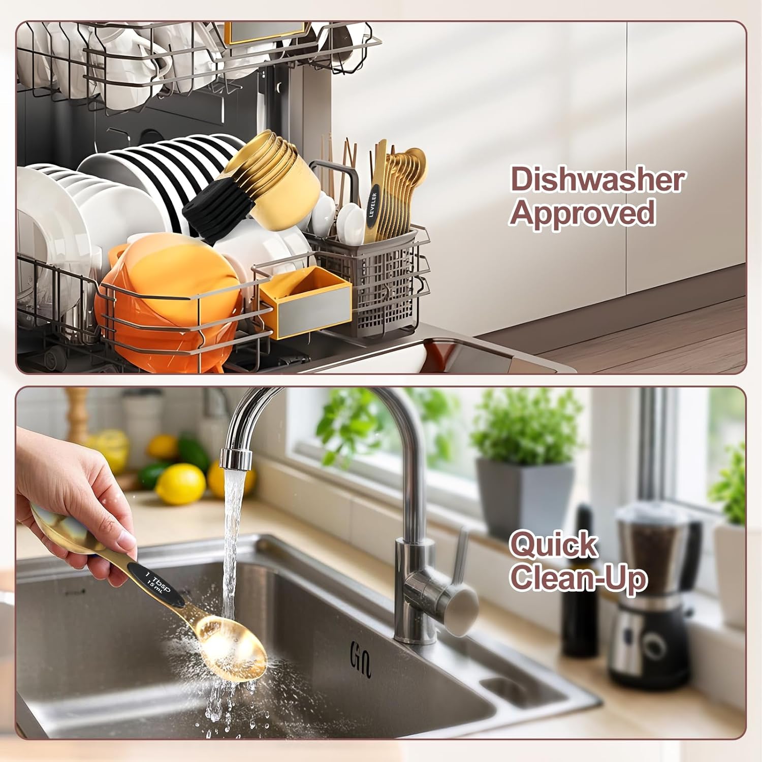 - Magnetic Nesting Storage: Strong magnets snap spoons, cups into space-saving stacks easily! Compact nesting design reduces clutter by 70% vs. loose sets. Stays organized and no more lost spoons!