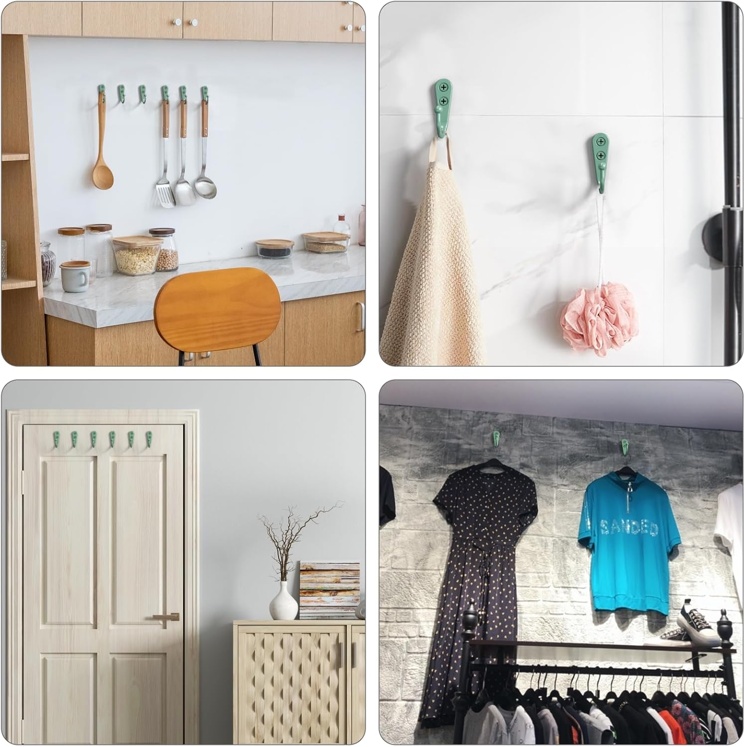 - Wide Application: You can use these hooks in bathrooms, closets, kitchen and garage, to hang various items, such as necklaces, coffee cup, cup, coats, belts, handbags, jewelry pieces, baskets, cooking ware, keys and so on