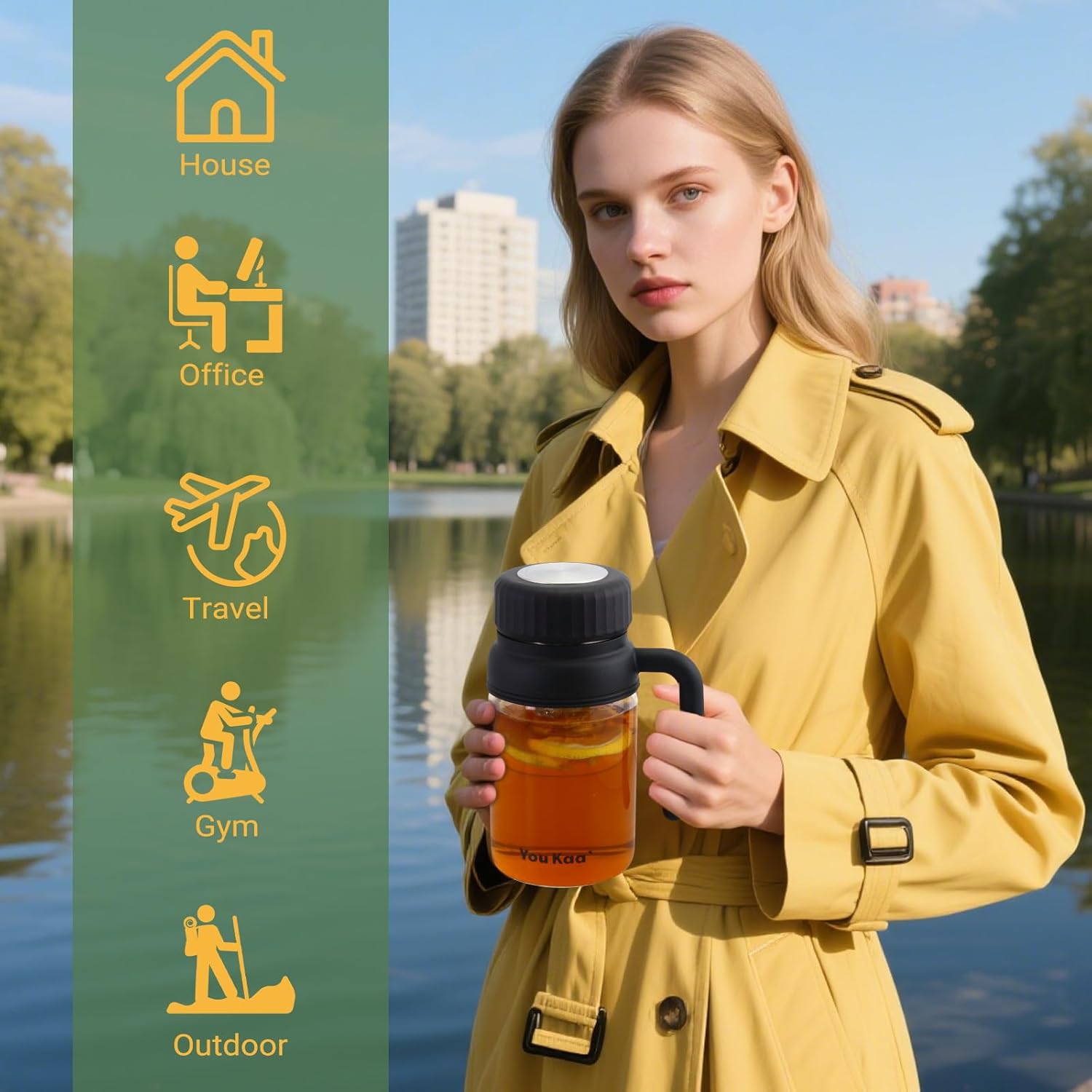 - 【Ergonomic Handle, Comfortable】: This infuser water bottle comes with an easy-to-grip handle, it fits naturally in your hand, reducing pressure during prolonged use. Whether you're sipping at your desk or relaxing on the couch, the handle ensures a comfortable and secure grip.