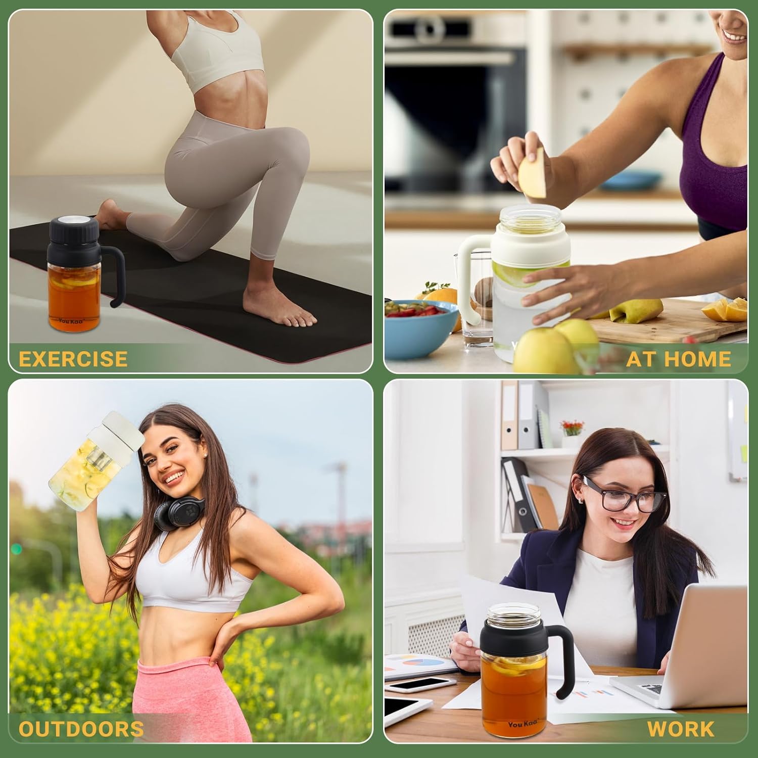 - 【Convenient Tea Infusion Design】:This glass water bottle equipped with a handy built - in stainless tea infuser. It allows you to effortlessly steep loose - leaf teas, herbal infusions, or even fruit slices. Just add your ingredients, pour in hot water, and let it steep. The fine mesh ensures that tea leaves stay behind, giving you a smooth, sediment - free sip every time.