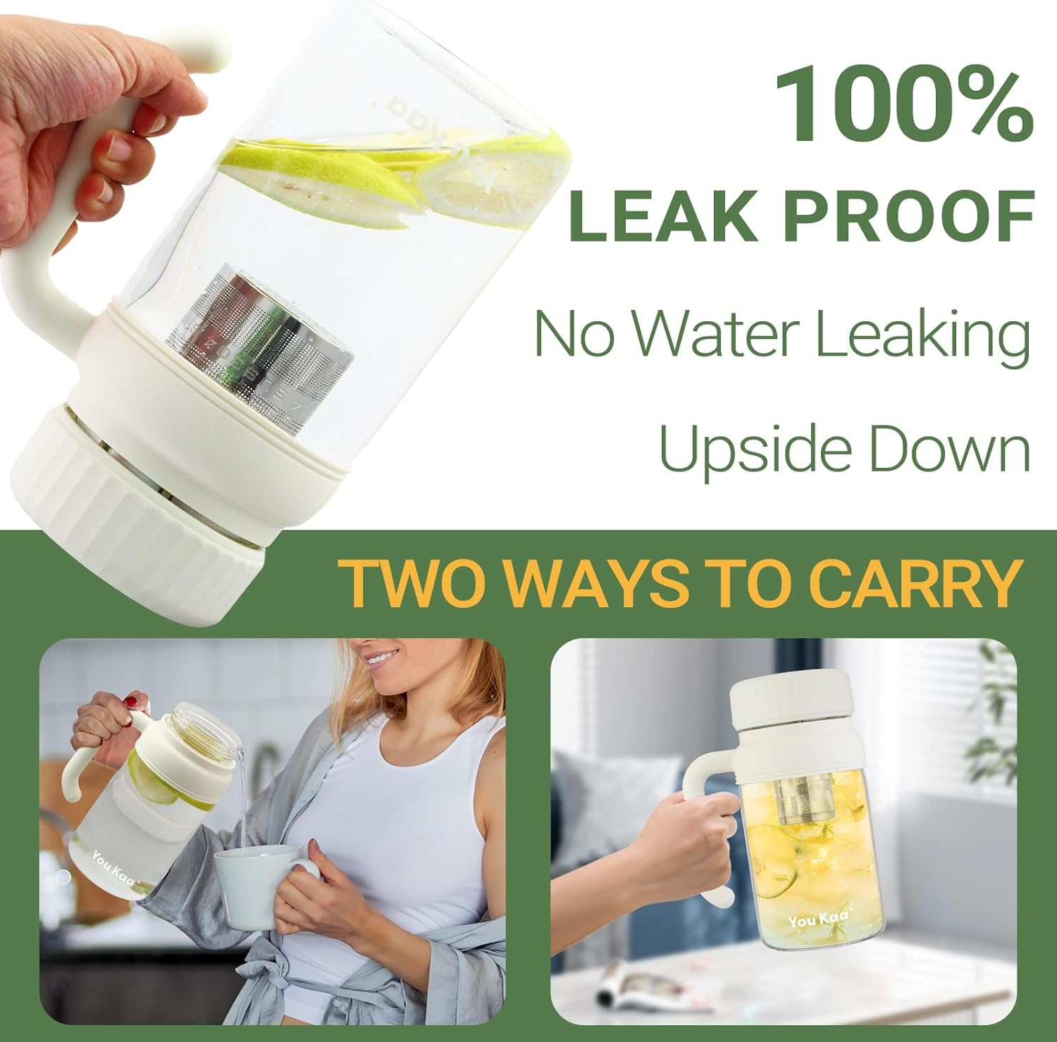 - 【High - Quality Glass Material】:Tea infuser bottle crafted from high - borosilicate glass, it withstands extreme temperatures without cracking. Enjoy hot tea or icy cold drinks, and the clear glass lets you admire your drink’s color and ingredients.