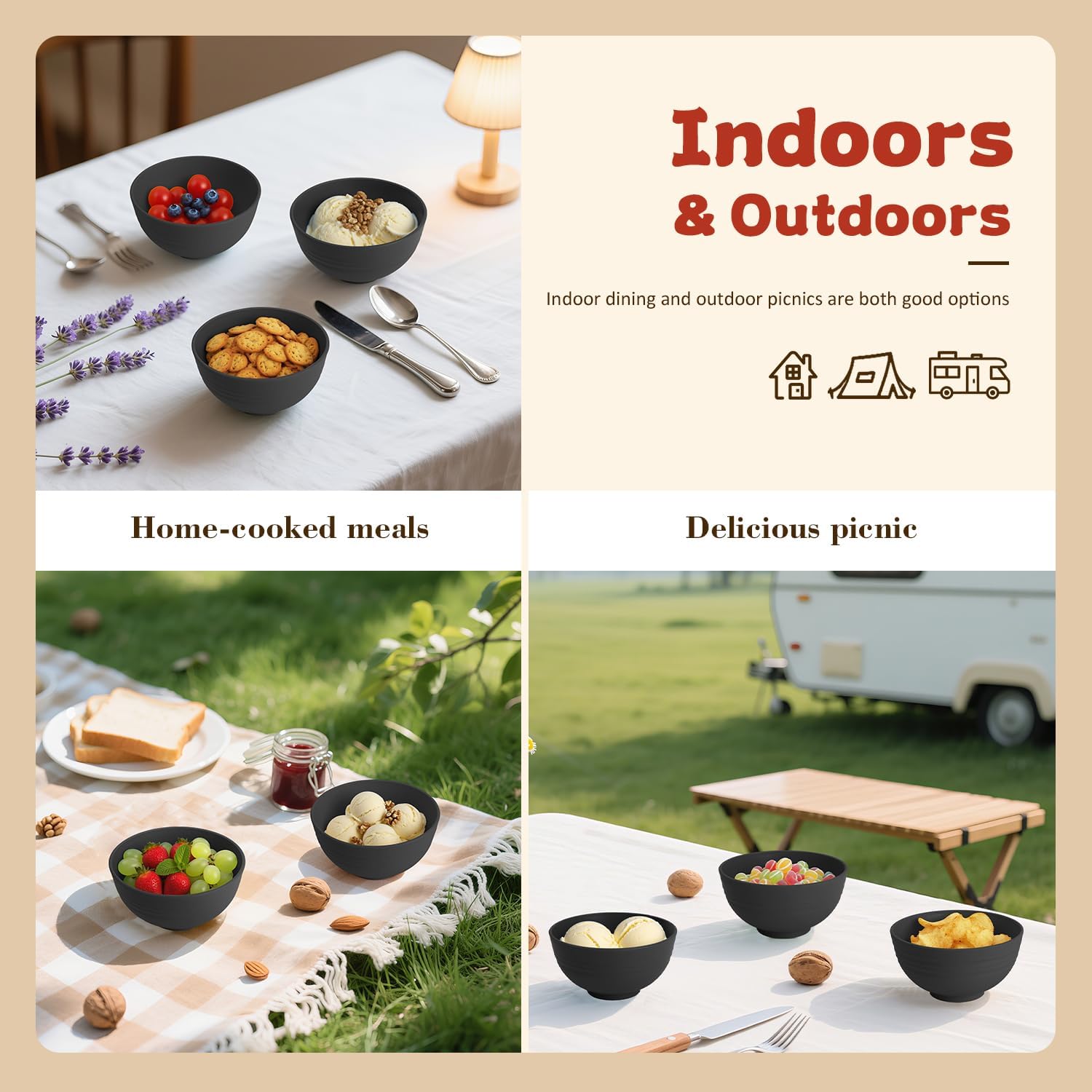 Handy Wheat Straw Bowls Set of 6,Unbreakable Ice-Cream Bowls Sets for Kids,10oz Small Dessert Bowls for Kitchen,Camping and RV.Black Series