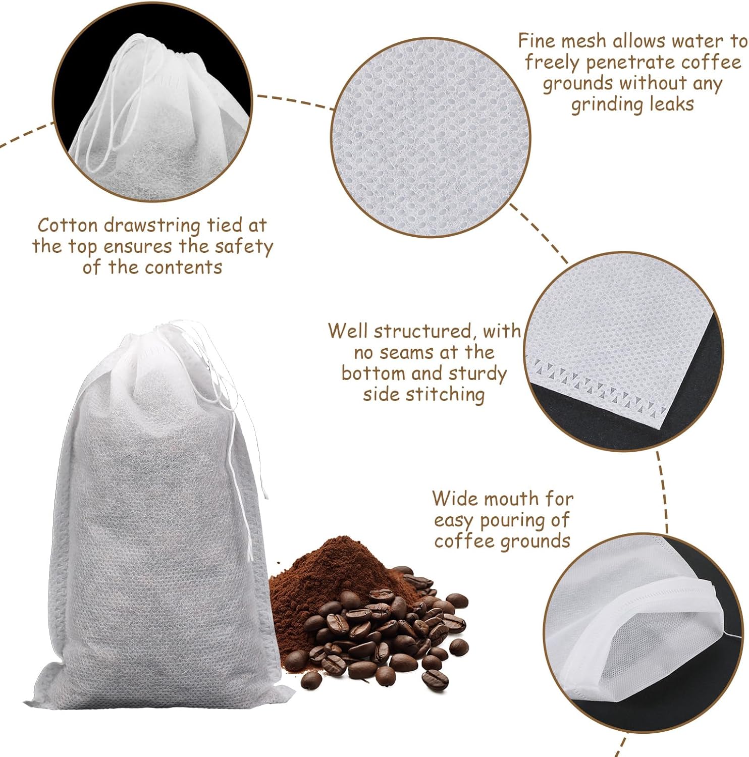 - Large Capacity: Each 6x10-inch cold brew tea bags can hold 2-3 cups of coffee grounds, suitable for 64-ounce Mason jars or 1-gallon jugs
