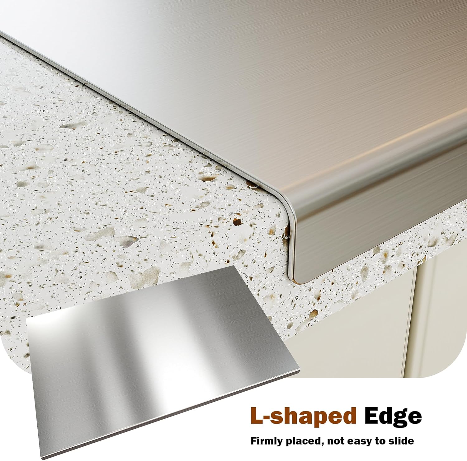 - 【Non-Slip Design】Additional erected border attaches securely and seamless fits to your counter and does help to stabilize the board during operation. Our cutting board with lip border features rubber feet on the underside so as not to slip when you are chopping and cutting