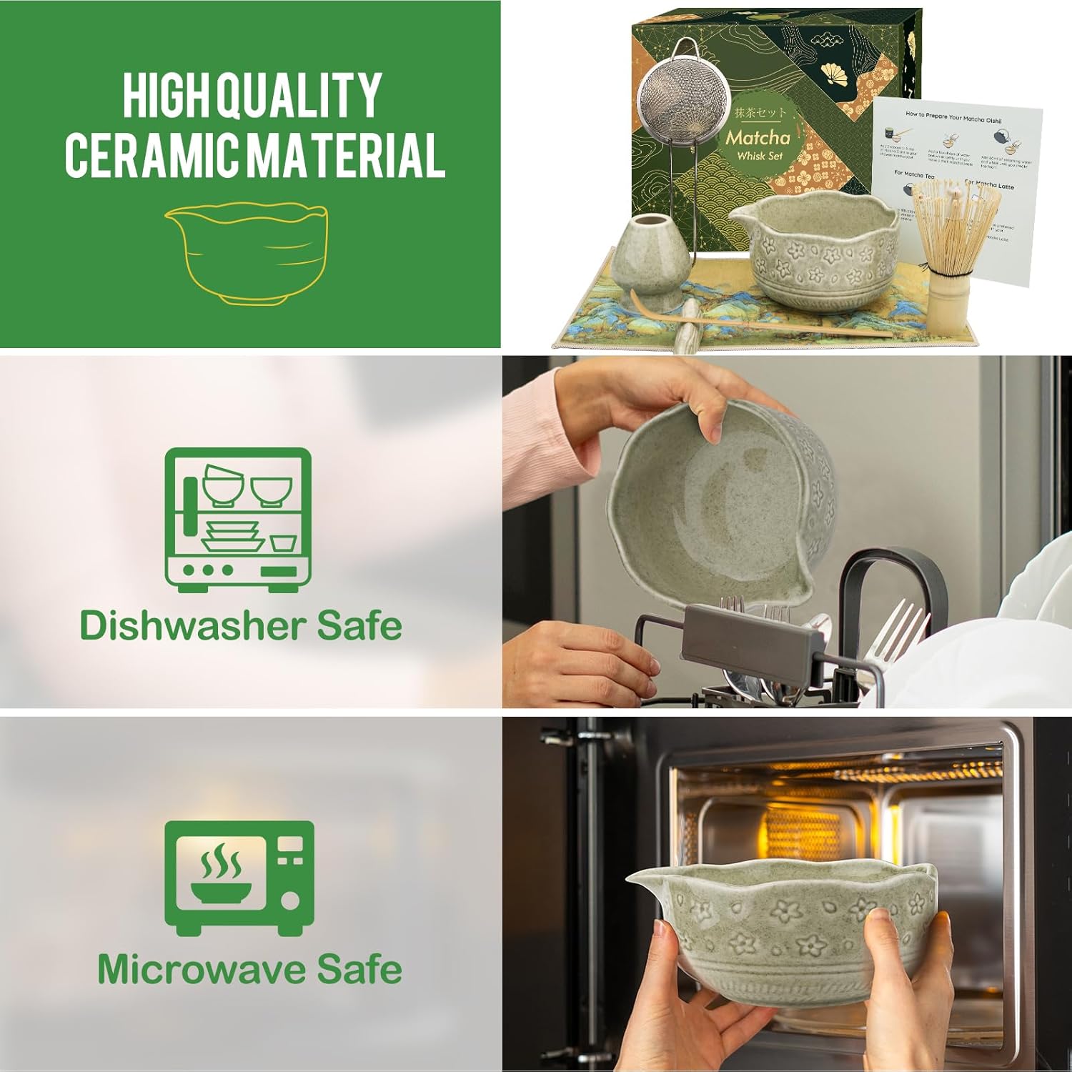 - 2.Ceramic & Bamboo Matcha Tea Set: Foloda Matcha Whisk and Scoop are crafted from bamboo. The Matcha Bowl, Whisk Holder, and Scoop Stand are made of durable, sturdy ceramic. Suitability for Tea and Hot Drinks.