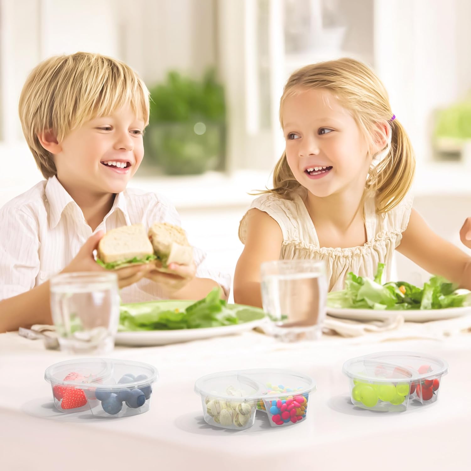 40pcs Reusable Snack Containers with Lids, 2 Compartment Snack Pack Containers for Fruits Candy Sauce Spices