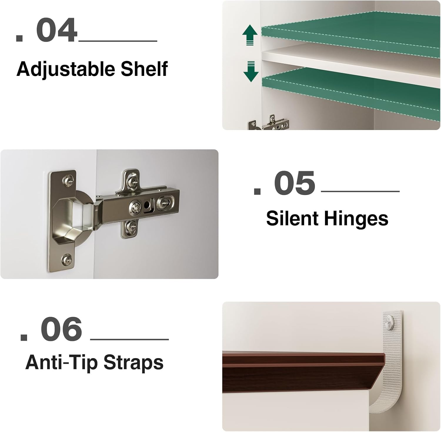 - ‌Safety & Hassle-Free Assembly: Equipped with an ‌anti-tip kit‌ for added safety, the storage cabinet includes all necessary hardware and clear step-by-step instructions for effortless setup—typically completed within 40 minutes by two people